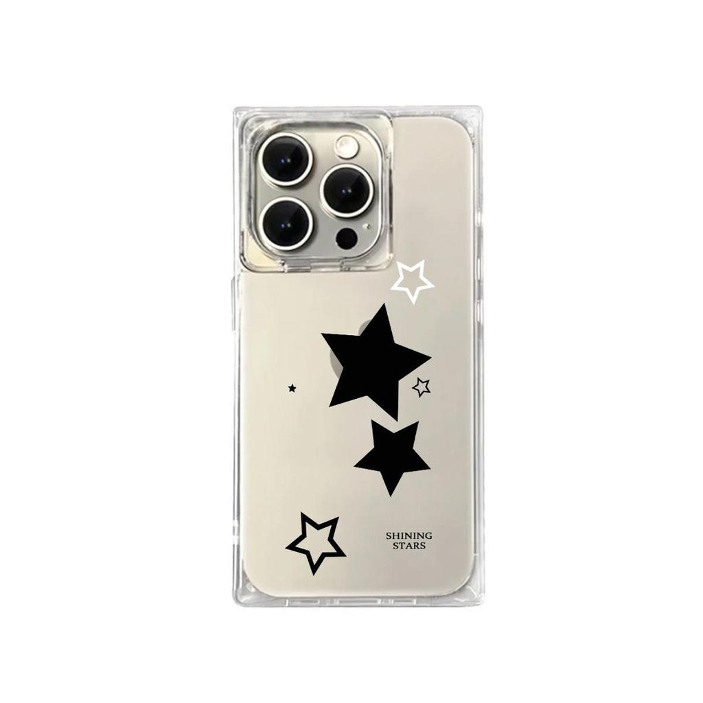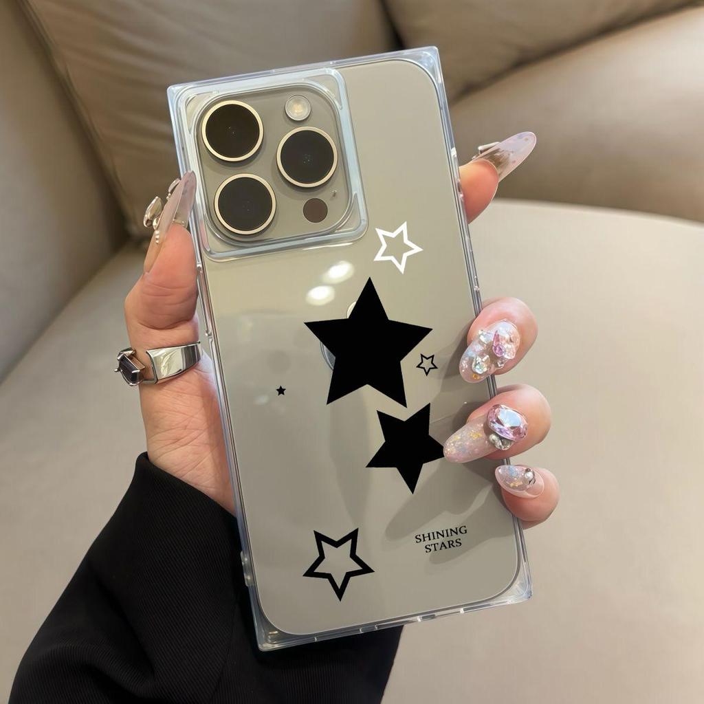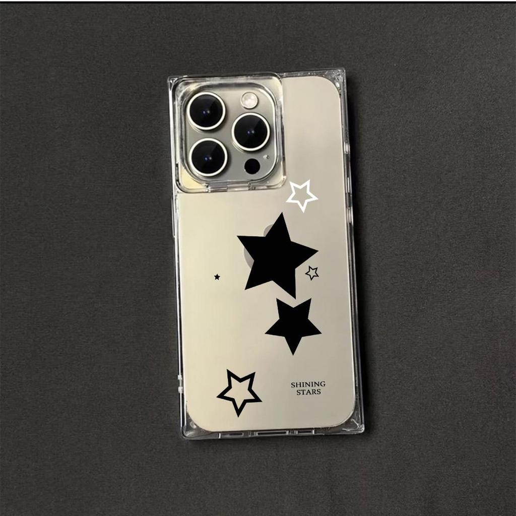 Прозрачный квадратный чехол-бампер для iPhone 16 ProMax 14 Pro Max 13 12 11 15 Plus, защита от окисления, с узором из пятиконечных звезд