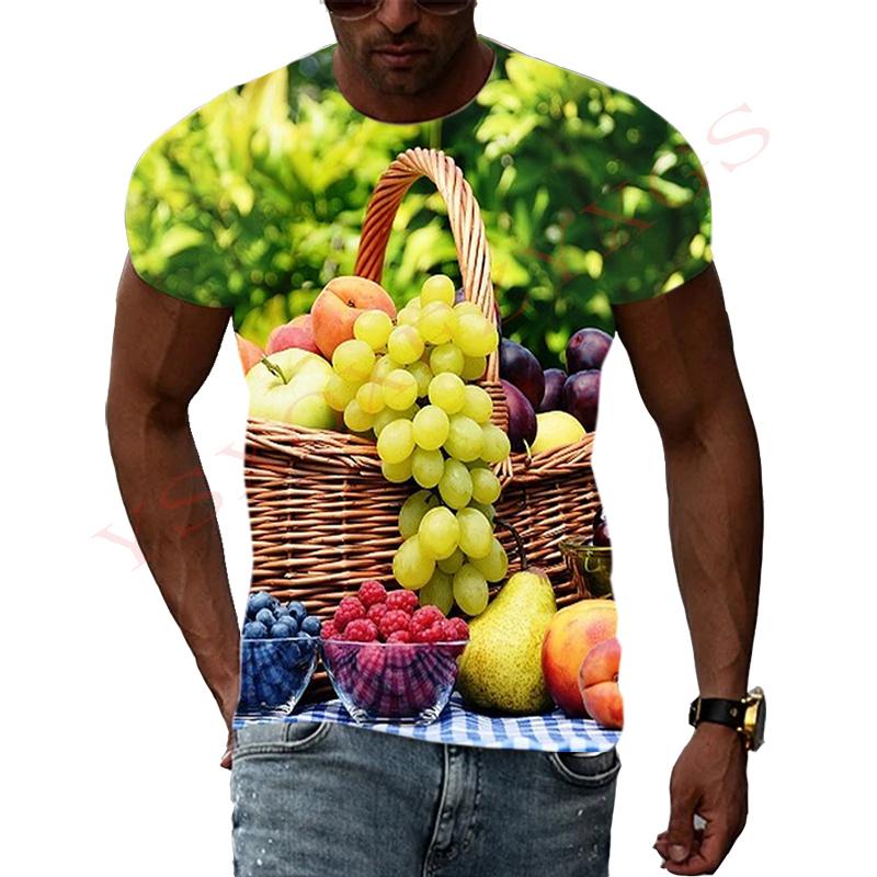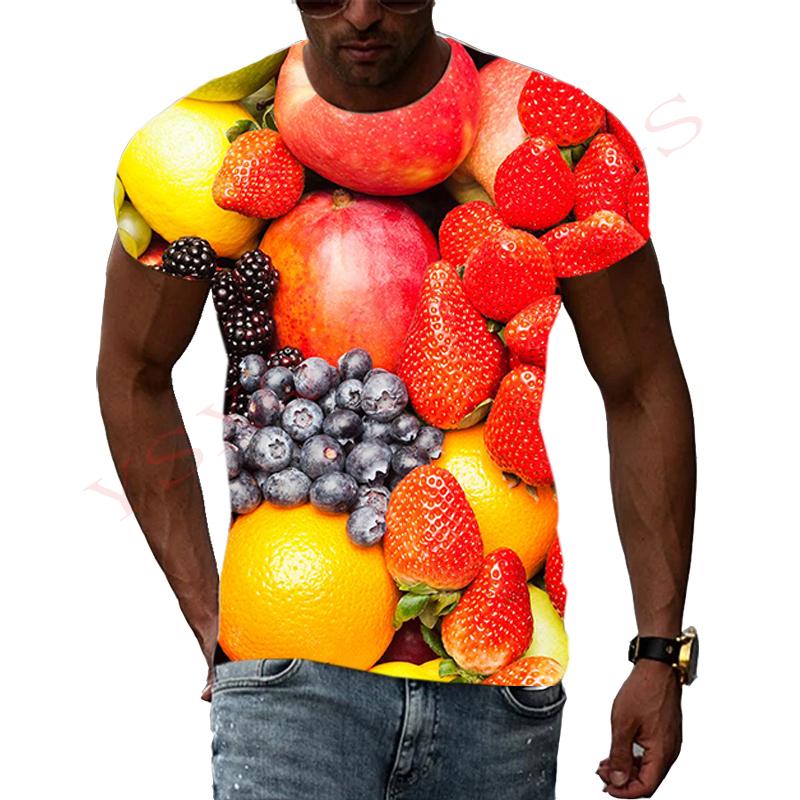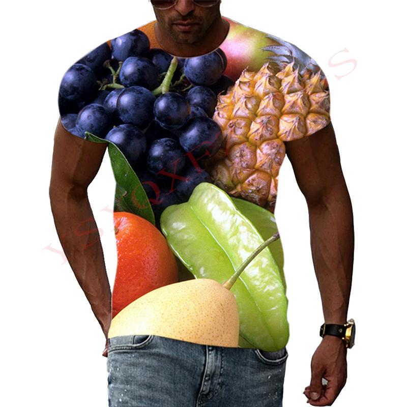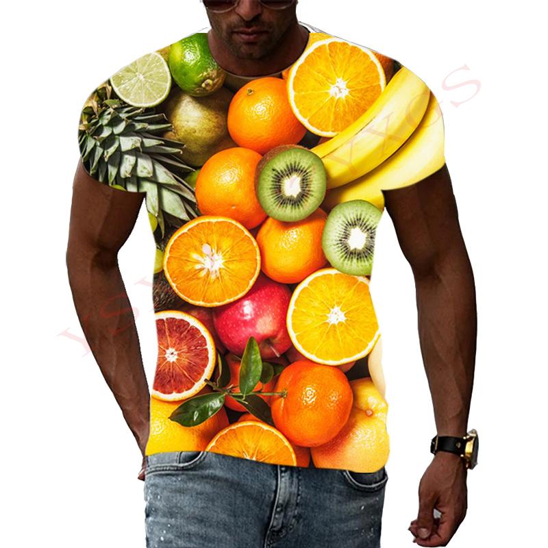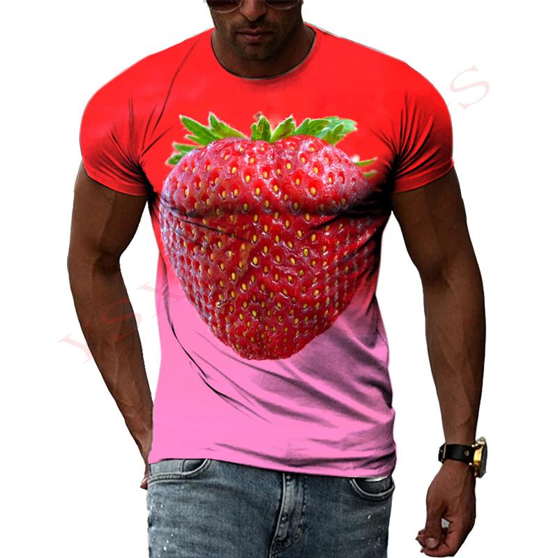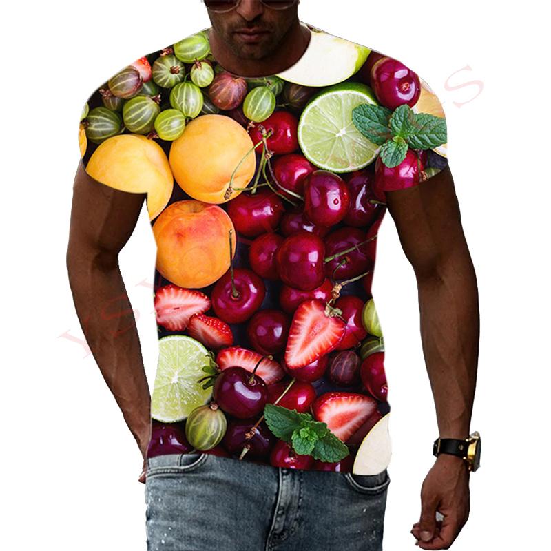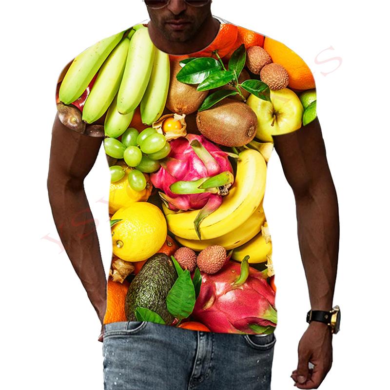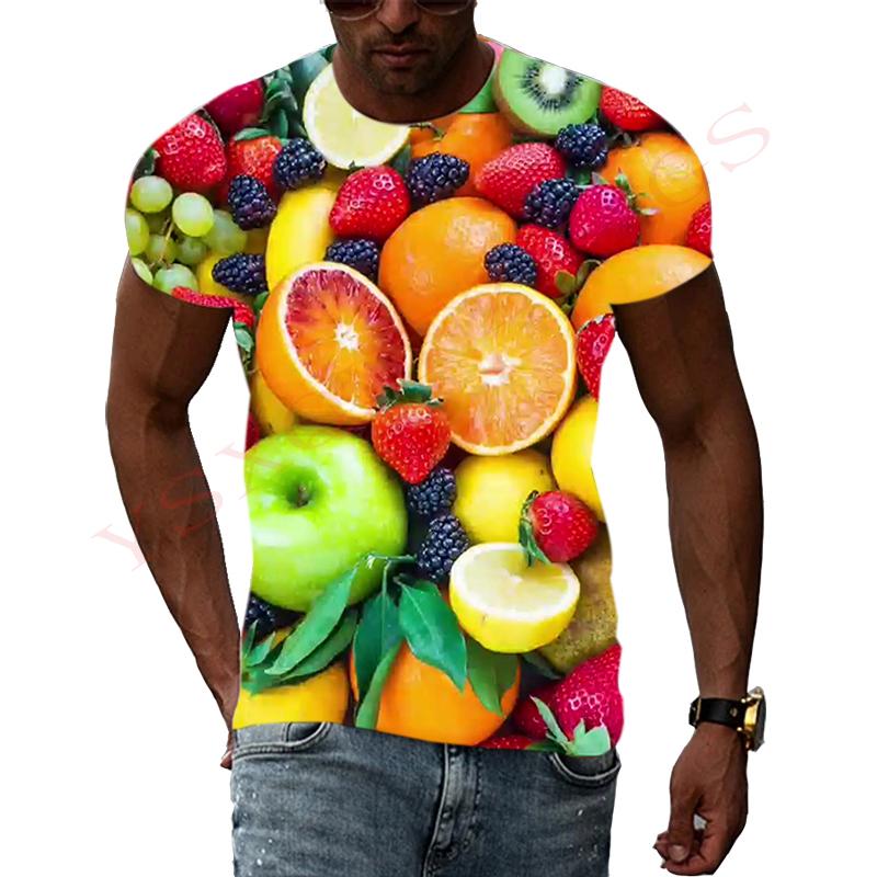 Летняя футболка с круглым вырезом, 3D-принтом с забавным фруктовым узором, модная повседневная мужская футболка с коротким рукавом