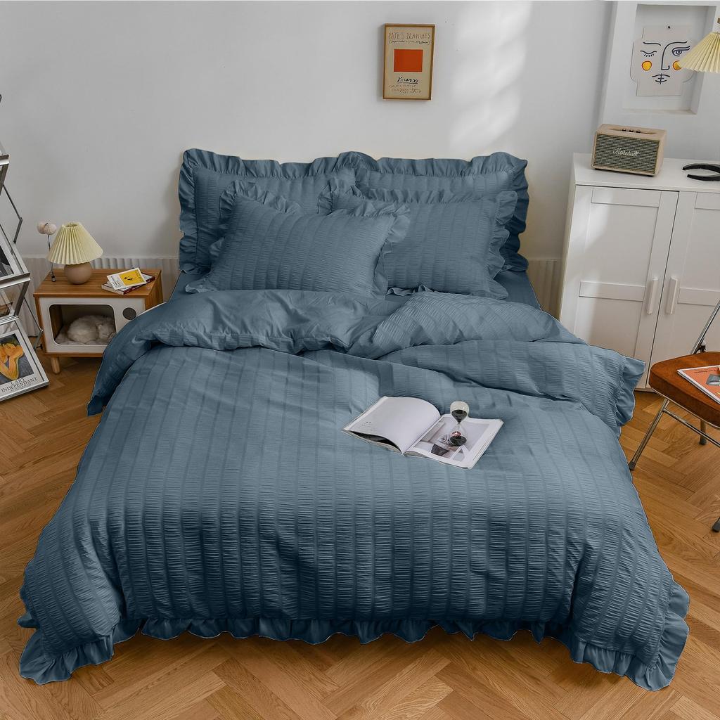 характеристики продукта: Одинарный набор из 3 предметов: Пододеяльник: 150 x 210 см, Простыня на резинке: 100 x 200 см + 30 см (ластовица), Наволочка: 46 x 63 см x 1. Полуторный 4-предметный набор: Пододеяльник: 170 x 210 см, Простыня на резинке: 140 x 200 см + 30 см (ластовица), Наволочка: 46 x 63 см x 2. Двойной набор из 4 предметов: Пододеяльник: 190 x 210 см, Простыня на резинке: 140 x 200 см + 30 см, Наволочка: 43 x 63 см x 2. Хотя наши сотрудники последовательны в измерении деталей, могут быть небольшие расхождения (приблизительно 2-3 см).