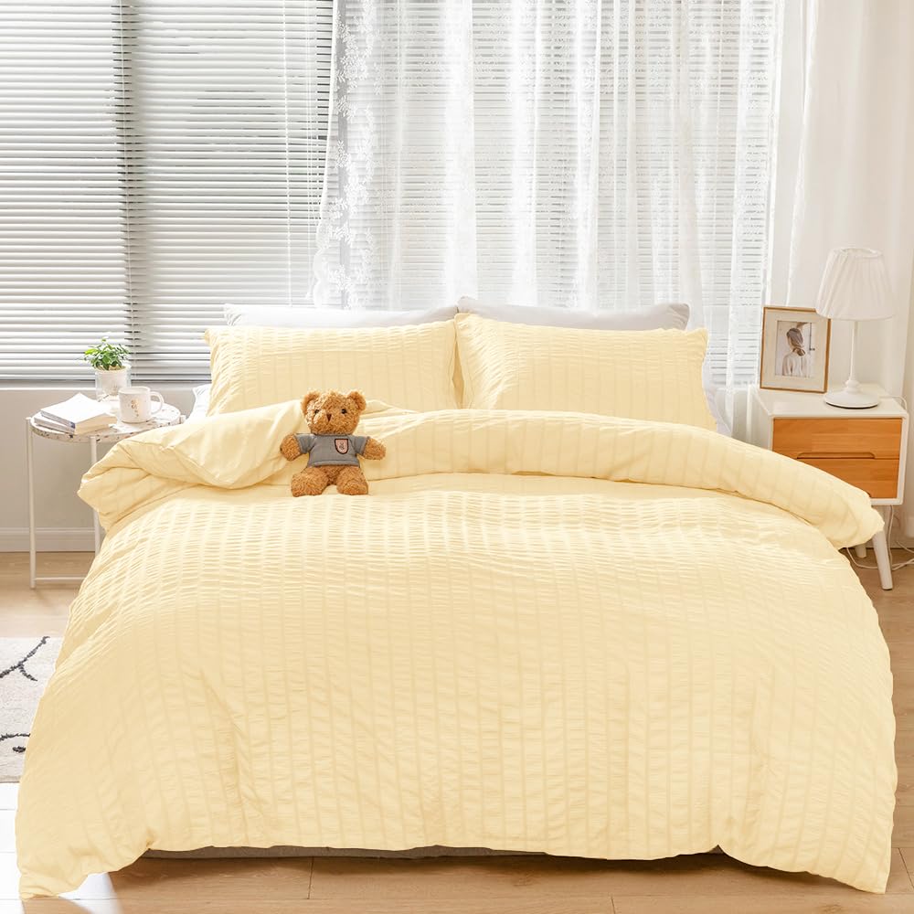 [☆Ткань в полоску и мятая текстура такие милые!! ☆] Мы используем ткань сирсакер, которая имеет мягкую, нежную текстуру благодаря своей бугристой технике плетения. Неровная поверхность минимизирует контакт ткани с кожей, создавая пространство между кожей и тканью для воздухопроницаемости и комфорта.. Он устойчив к сминанию, не выцветает и не скатывается, обеспечивая комфортный ночной сон.. Его легко мыть, поэтому вы можете поддерживать его в чистоте и использовать в любое время года.