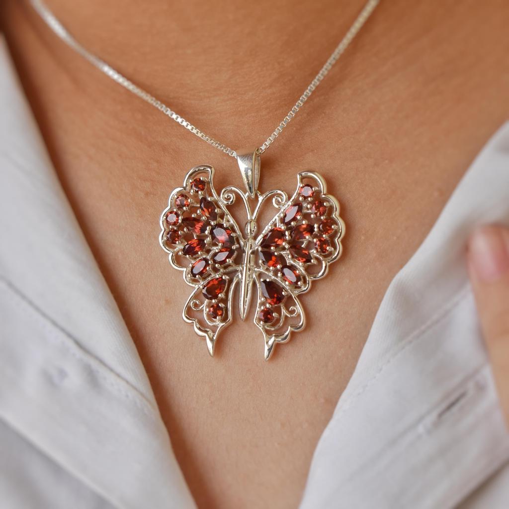 Подвеска-шарм в виде бабочки из натурального граната, ювелирное изделие из серебра 925 пробы, красная бабочка, подарок для нее — купить товар онлайн с бесплатной доставкой по всему миру!