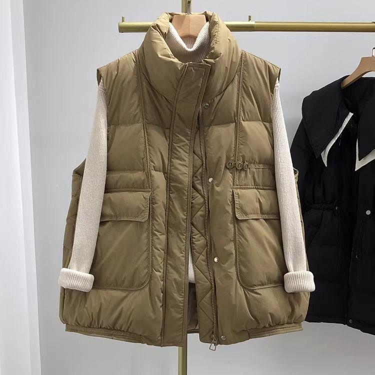 Пуховой жилет Женский Свободный Модный Однотонный Стойка Воротник Простой и Универсальный Осенний Жилет Куртка — купить товар онлайн с бесплатной доставкой по всему миру!