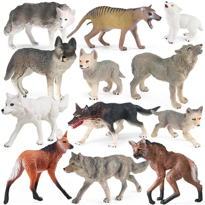 Характерная черта:Oenux Дикие животные Маленький серый волк Симуляция Детеныши волков Модель Коллекционные фигурки Реалистичные ПВХ Топперы для торта Игрушка