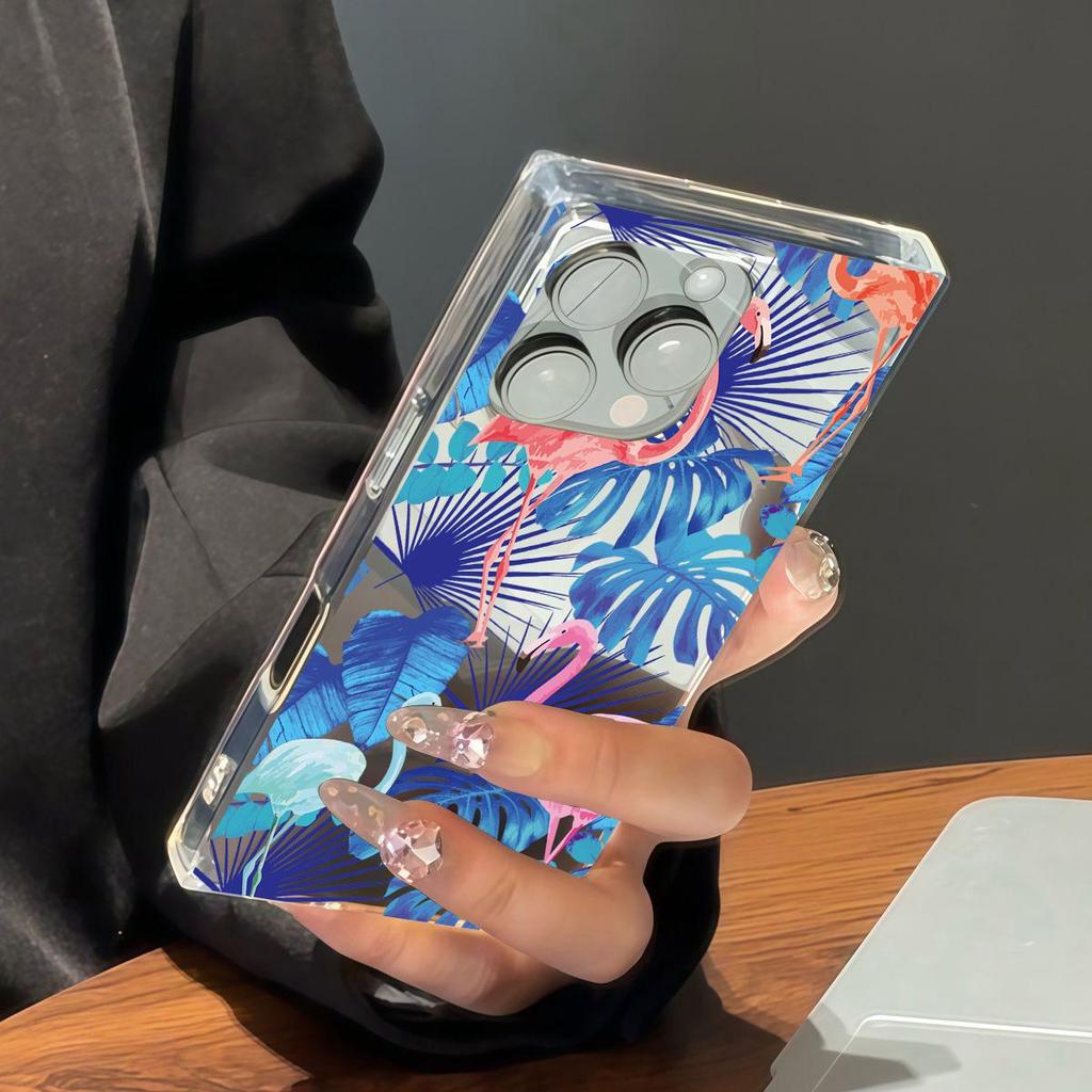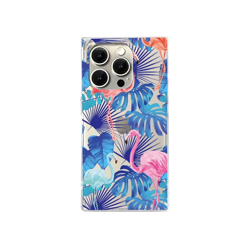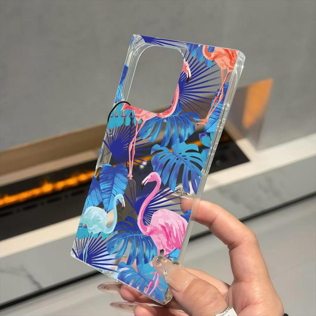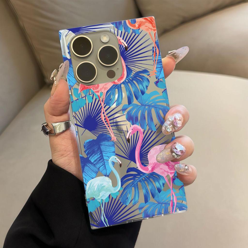 Прозрачный квадратный чехол-трубка для защиты для iPhone 11 15 Plus 16 ProMax 14 Pro Max 13 12 Защита от кислорода, чехол с рисунком лесных фламинго
