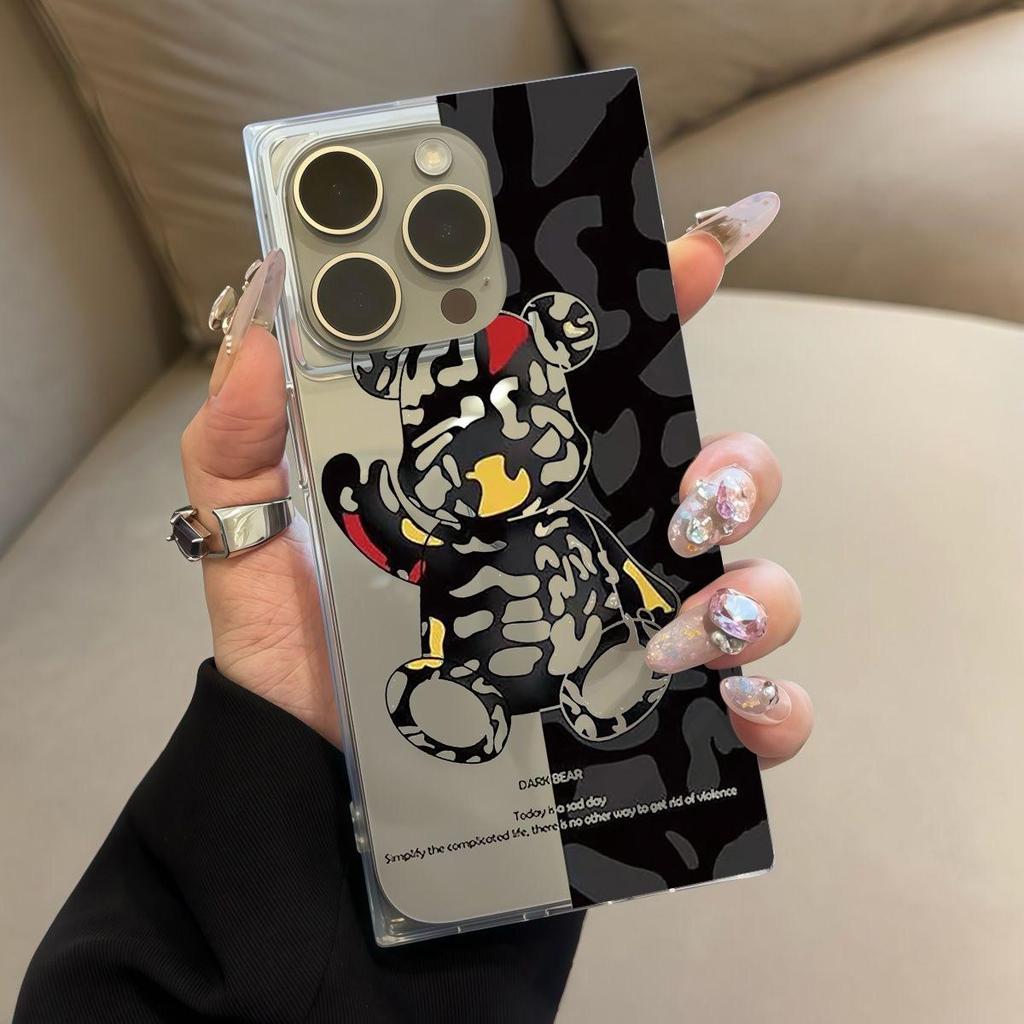 Прозрачный чехол с квадратной задней крышкой и защитой боковых граней для iPhone 12 16 ProMax 15 Plus 14 Pro Max 13 11, устойчивый к окислению, с черным узором «Яростный медведь»