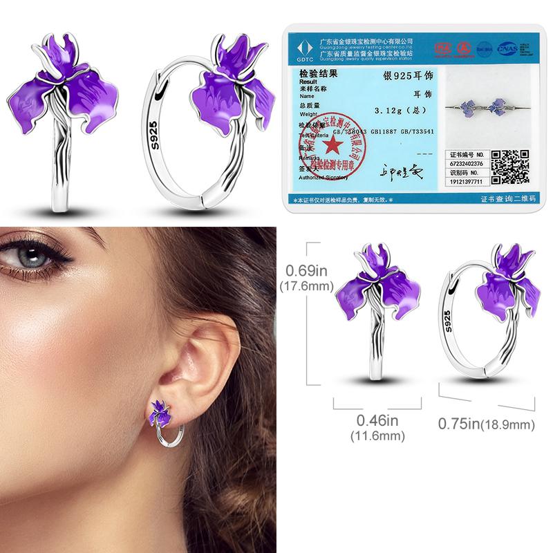 Серьги-кольца из стерлингового серебра 925 пробы, Медные, Цикл, Фиолетовые цветы, Блестящий кубический циркон, Пирсинг, Пусеты, Изысканные, Обручальные, Циркон, Женские подарки