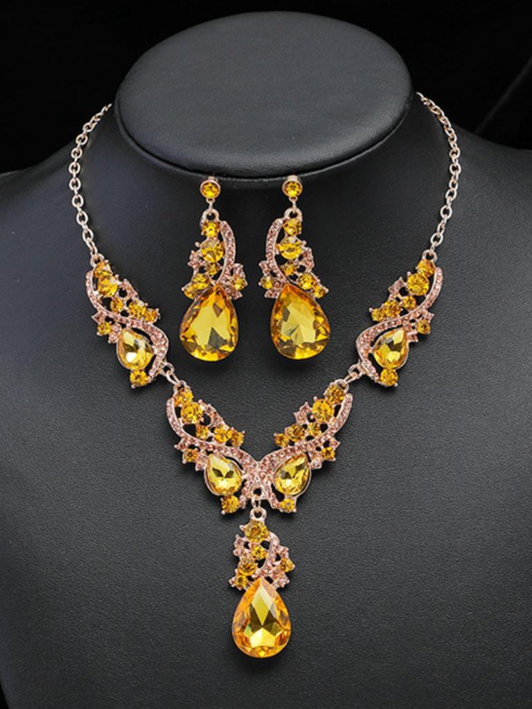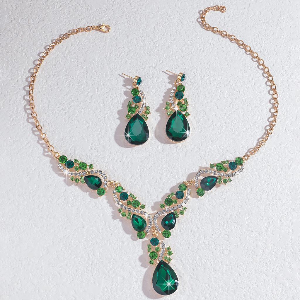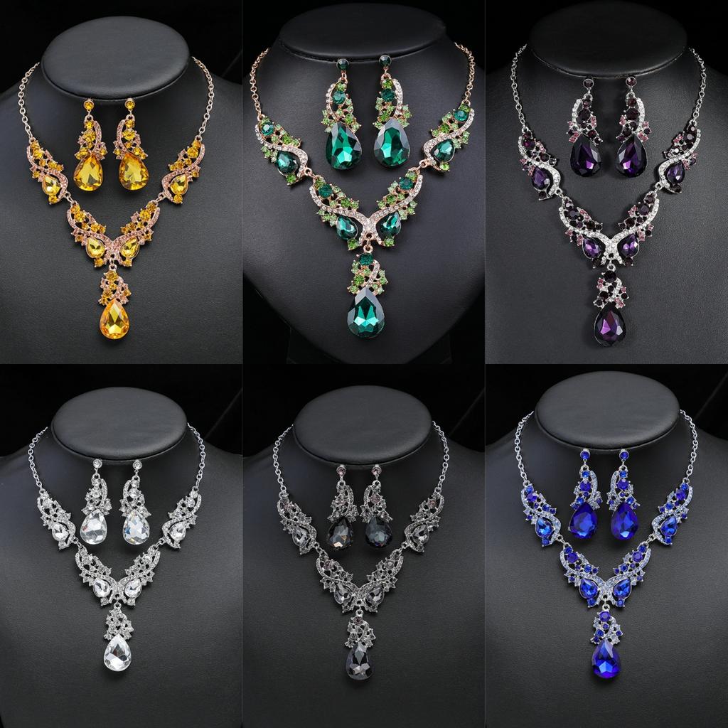 3 шт. Женский роскошный набор короткого колье и серег из стекла в форме капли воды, аксессуары для платья на ключицу для вечеринки, женское колье, подарки с цирконом
