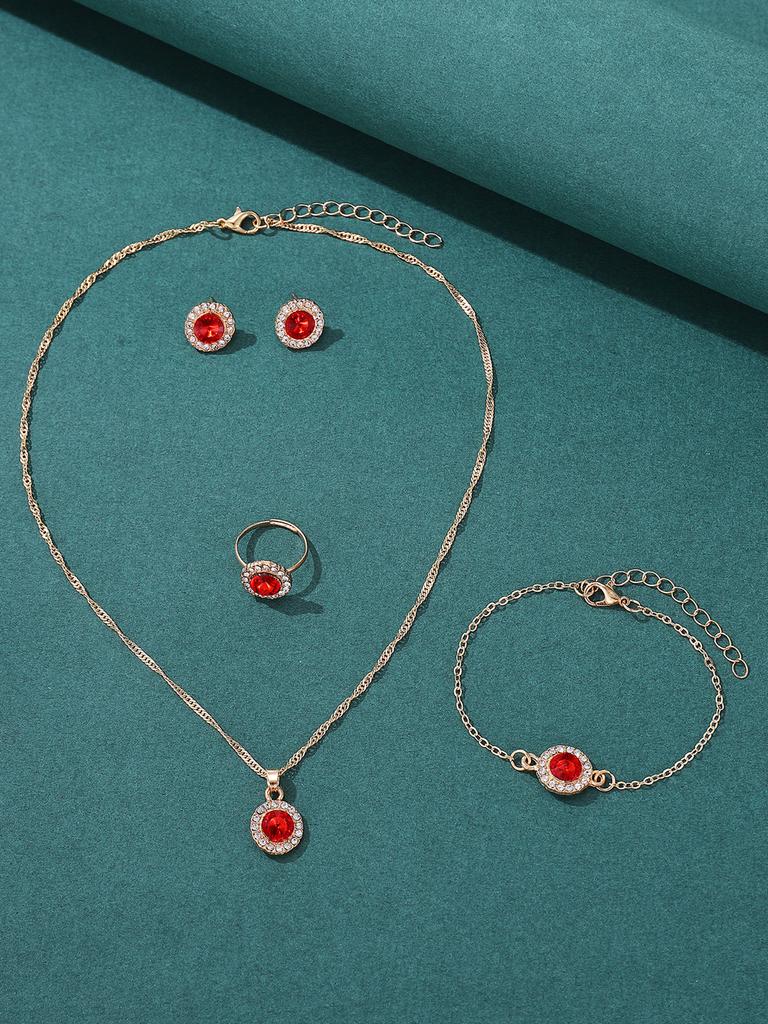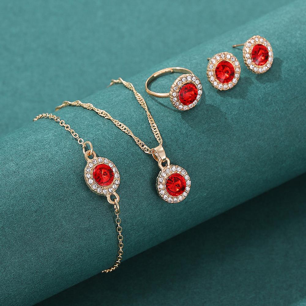 Набор из 5 предметов с цирконом для женщин, Роскошные женские модные повседневные браслеты, Ожерелье, Кольцо, Серьги с цирконом, Подходит для повседневной носки, Gi