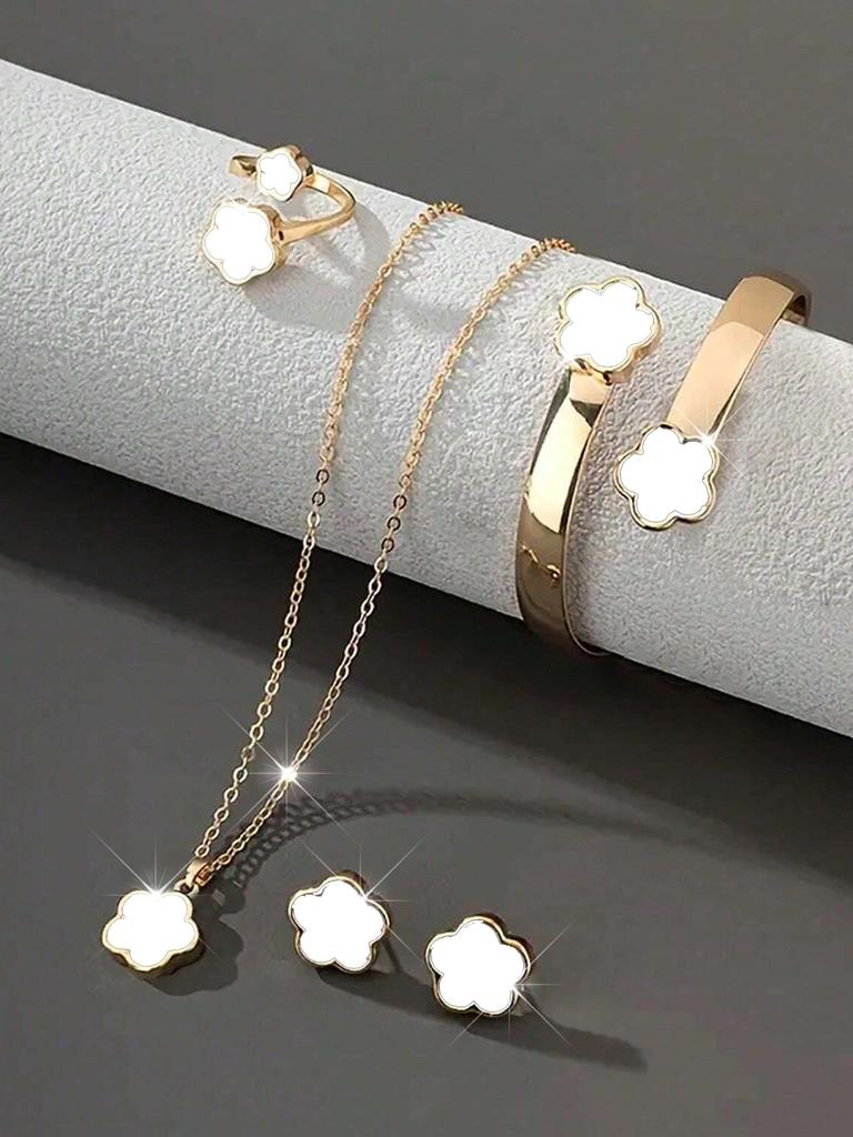 Набор из 5 цирконов: браслет «Клевер на удачу», ожерелье, серьги, ожерелье и кольцо. Набор с цирконами. Подходит для повседневной носки в качестве подарка для
