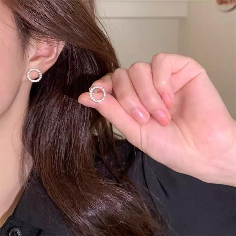 Простые Элегантные Модные Универсальные Нежные Серьги-пусеты-круги Кристалл Премиальное Ощущение Страз Корейские Повседневные Циркониевые Аксессуары