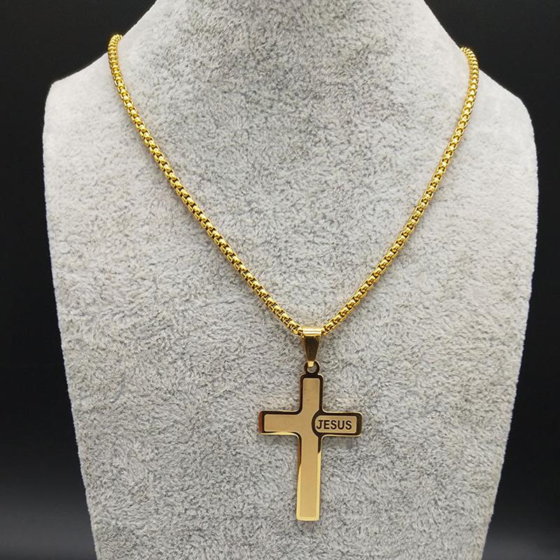 HNSP Подвеска-цепочка из нержавеющей стали с крестом Иисуса для мужчин и женщин, католические распятия, розарии, аксессуары с цирконом