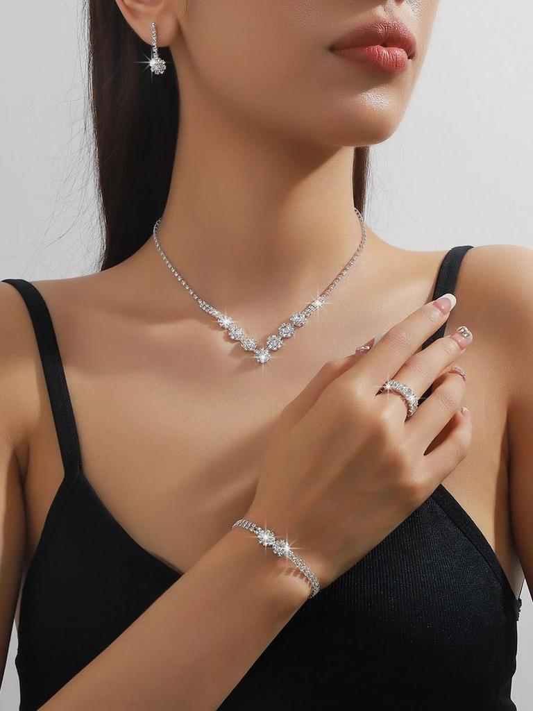 Женский Модный Медный Коготь Цепь Конус Ожерелье Серьги Браслет Кольцо Циркон Набор Свадебный Банкет Вечеринка Праздничный Подарок