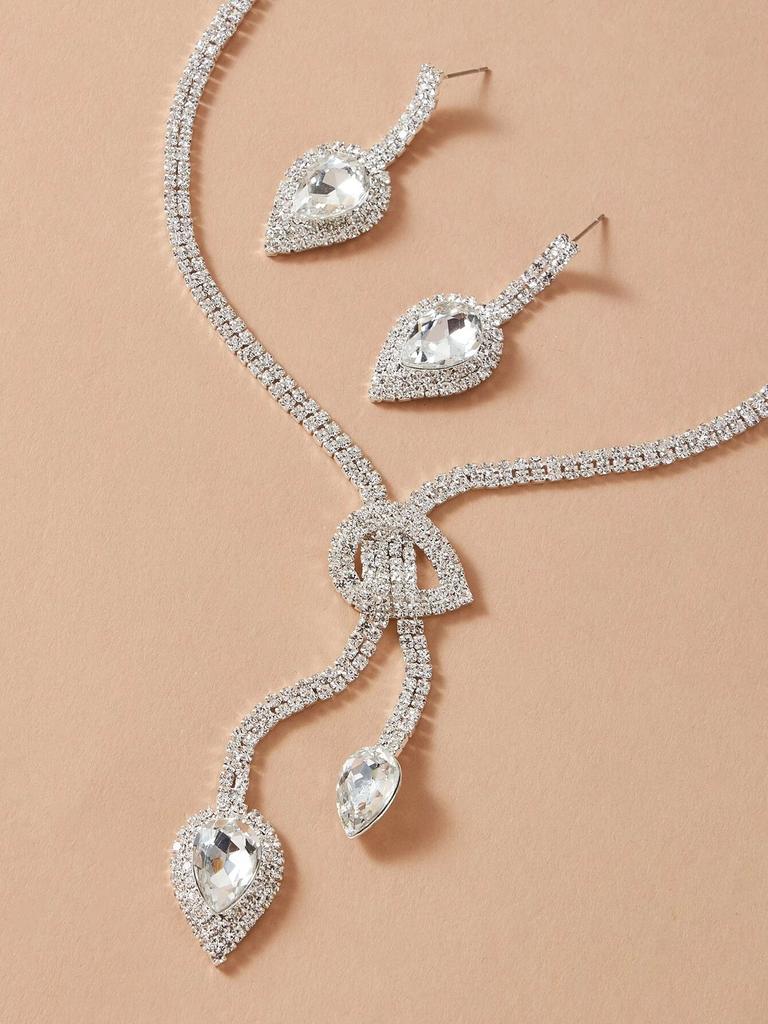 3 предмета Женский модный тренд Цепочка-коготь Капля воды Ожерелье Серьги Набор цирконов Свадебный банкет Вечеринка Праздничный подарок