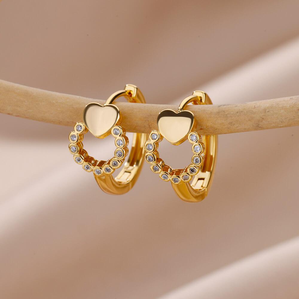 Серьги-кольца из нержавеющей стали в форме сердца для женщин, цирконий, золотистый цвет, эстетичные, водонепроницаемые, для пирсинга ушей, с цирконием