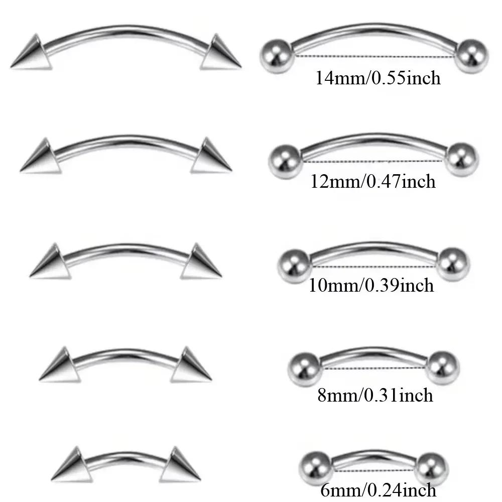 10/20 шт. Кольцо для брови из хирургической стали, шарик 3 мм, конус, 6/8/10/12/14 мм, изогнутая штанга, пирсинг уха/тела