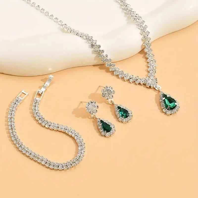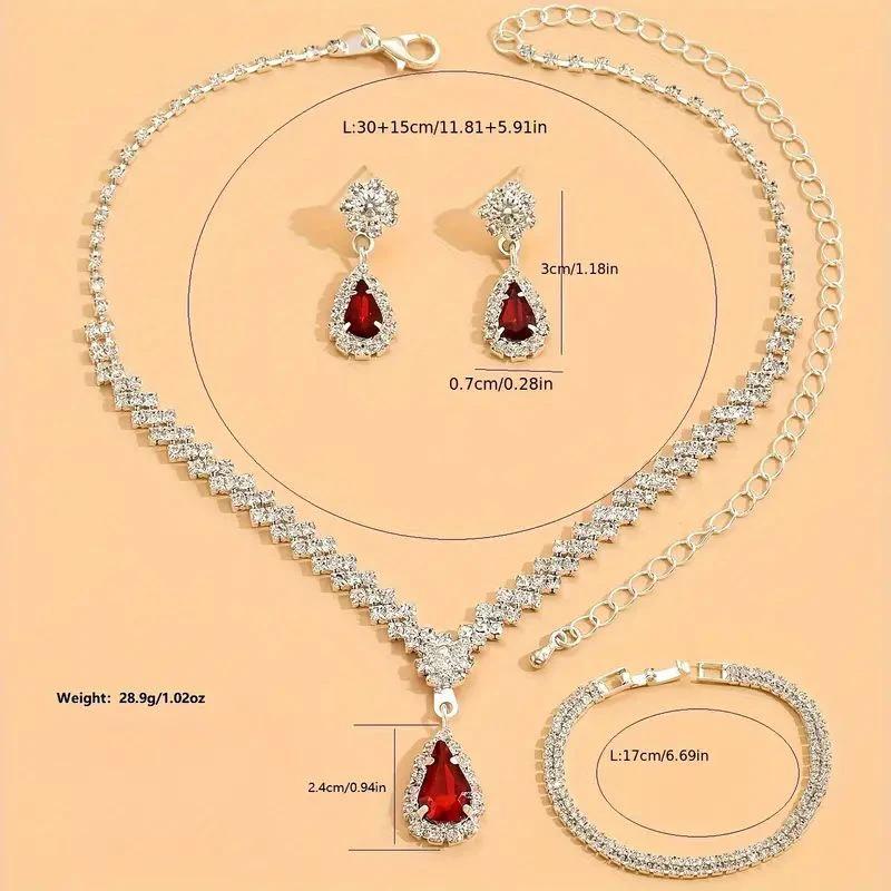 Набор из 3 предметов Красный Водный Доп Камень Ожерелье Серьги Браслет Полный Кристальный Камень Ожерелье Синий Зеленый Красный Цвет Подвеска Женский Циркон