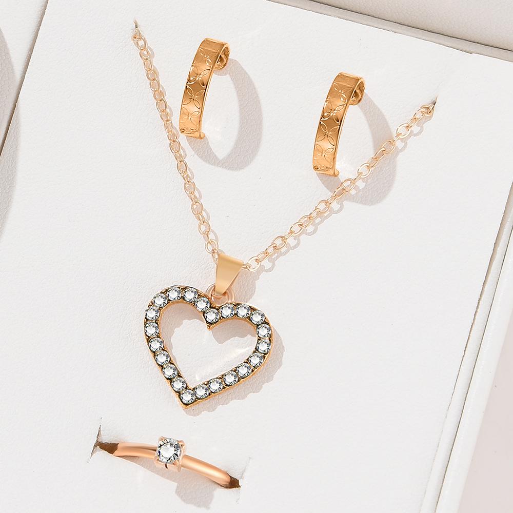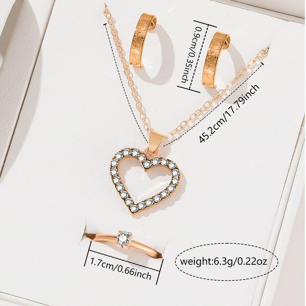 Набор из 4 предметов Женский набор с бриллиантовой инкрустацией Любовь Циркон с модным темпераментом Сладкий и креативный дизайн Ожерелье в форме сердца