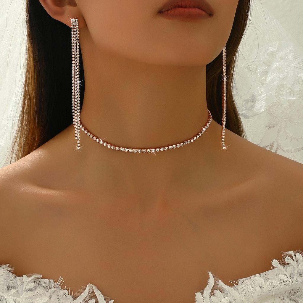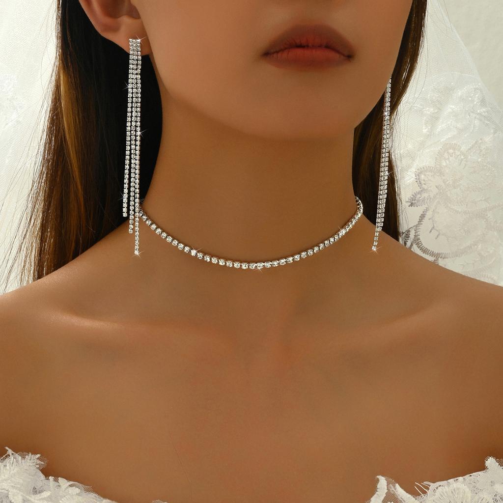 Женский набор из 3 предметов: модное колье-кисточка с водяным цирконом и серьги с цирконом, для свадьбы, вечеринки, фестиваля, подарок