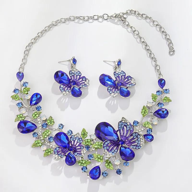 Многоцветные серьги с подходящим ожерельем Модные цветы баухинии Кристальный циркониевый набор Свадебное ожерелье Женский циркон
