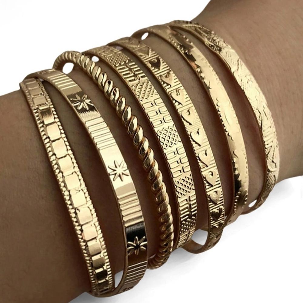 7 шт./компл. Винтажный элегантный браслет-бенгл с шестигранной звездой и витым дизайном, золотистого цвета, ручная работа, циркон, подарок