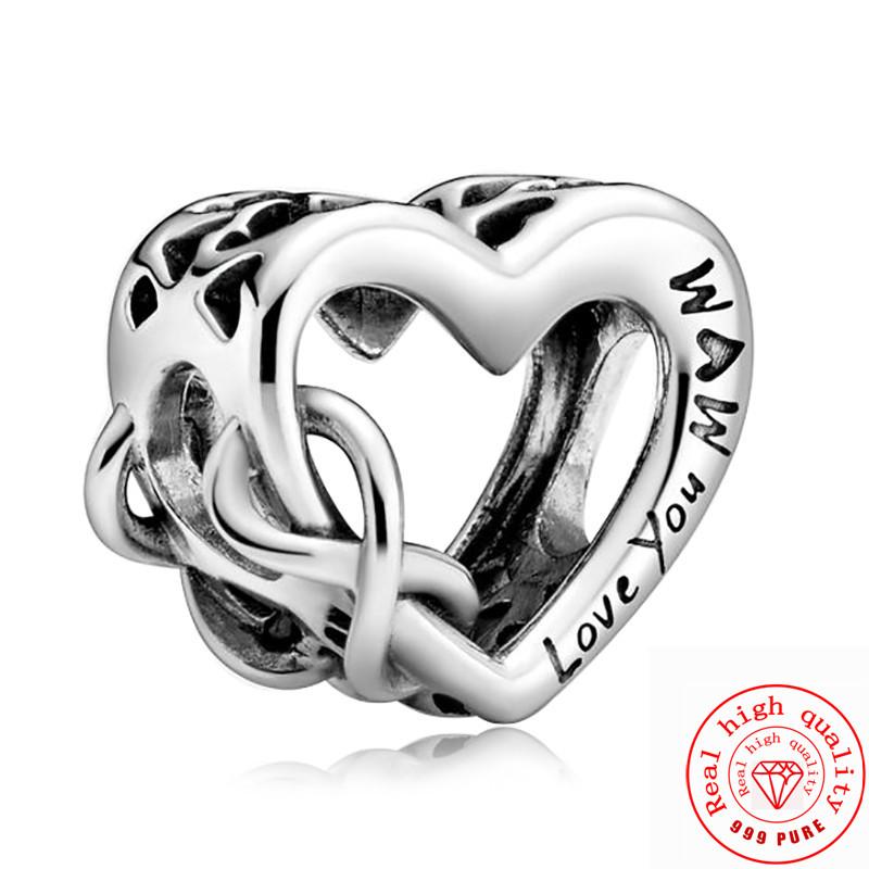 Оригинальный браслет-шарм Pantaro Authentic Fit DIY с цирконом из стерлинговой меди 925 пробы, ажурный, в форме сердца, «Бесконечная любовь», для мамы, с изысканными бусинами