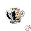Подходит для оригинального браслета с шармами Pantaro 925 медь Двухцветное кольцо-сердце Мама Дерево Велосипед Звезда Замок Свеча Золотые бусины DIY Циркон