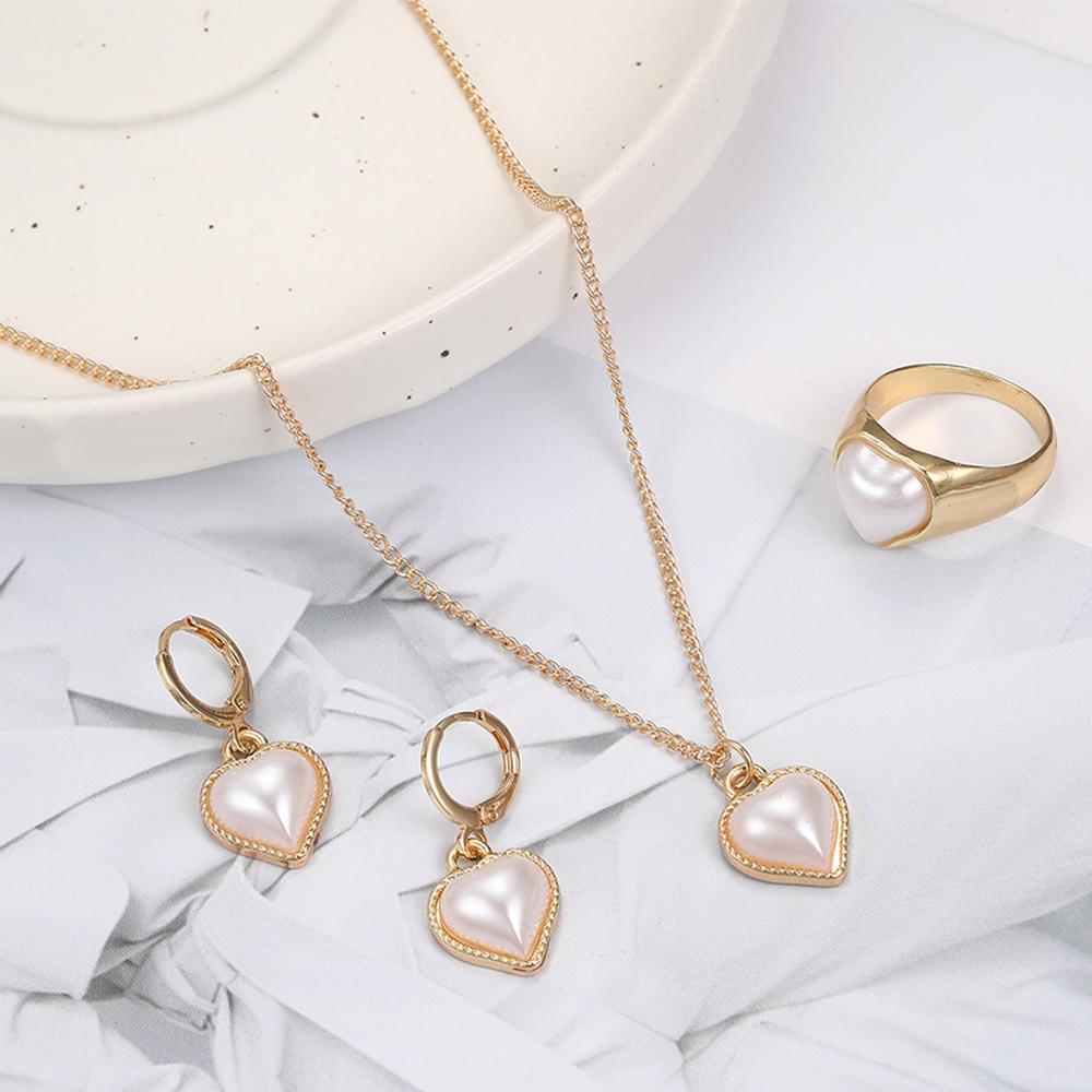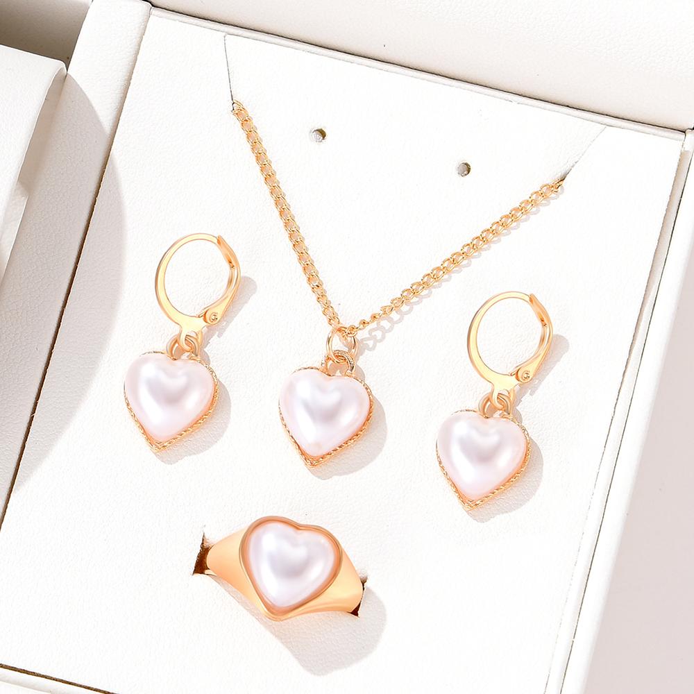 Женский минималистичный набор из 4 предметов: ожерелье с цирконом в форме персикового сердца, модное персонализированное креативное ожерелье, кольцо, серьги
