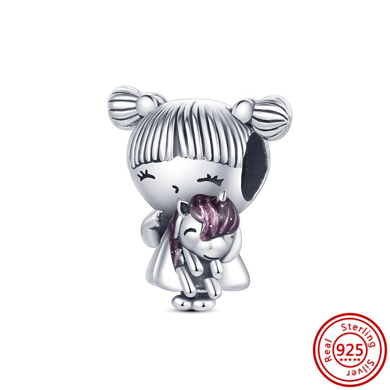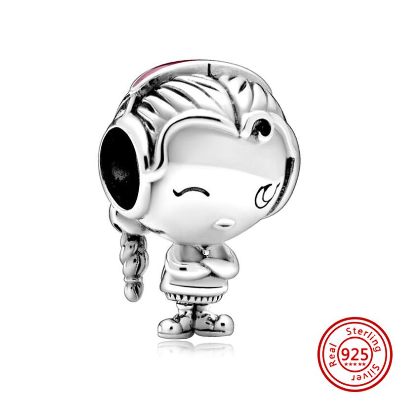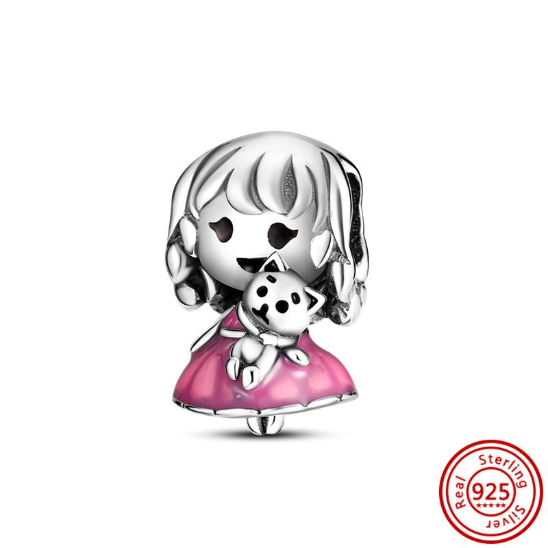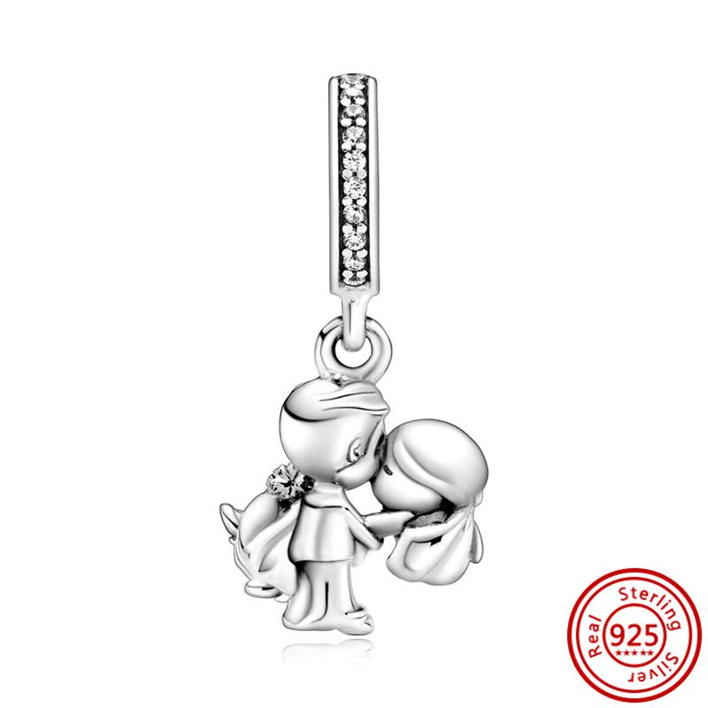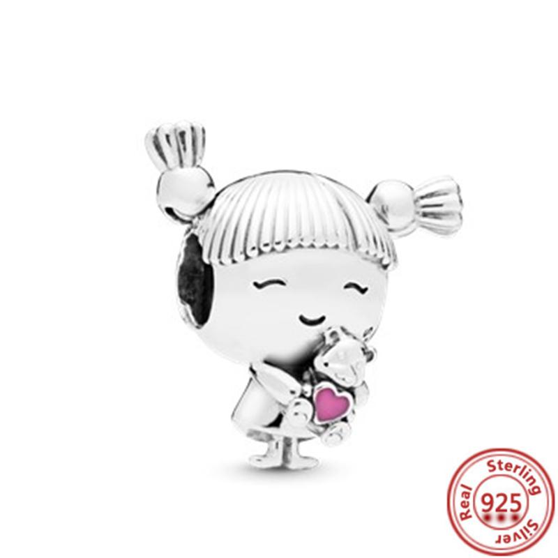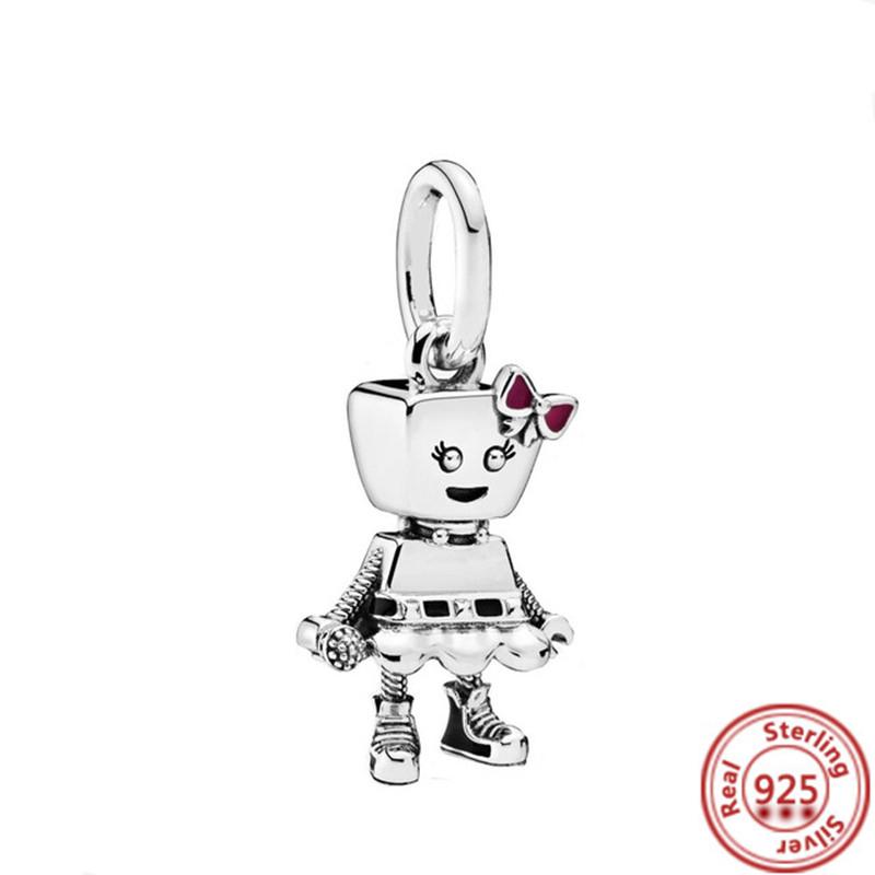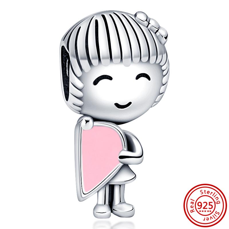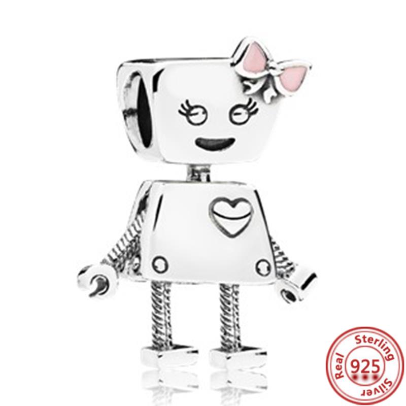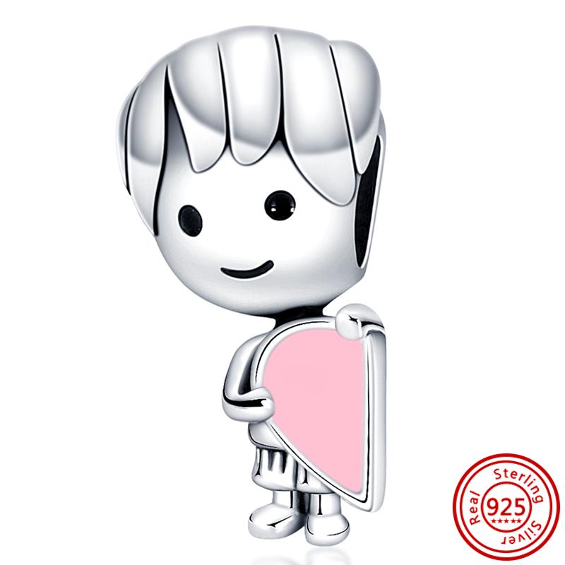 Подходит для оригинального браслета-шарма с подвесками из тонкого циркона, стерлингового серебра 925 пробы, милый, прекрасный, счастливый мальчик, девочка, любовь, розовое сердце, робот, DIY бусины
