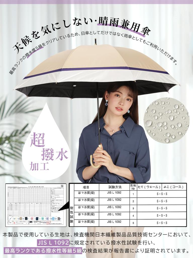 KIZAWA UV Light Long Full Sun Level 5 Water Suitable for Sun and Heat Rattan and Bamboo 55cm Ribs Beige and Women's Parasol, Protection, 100%