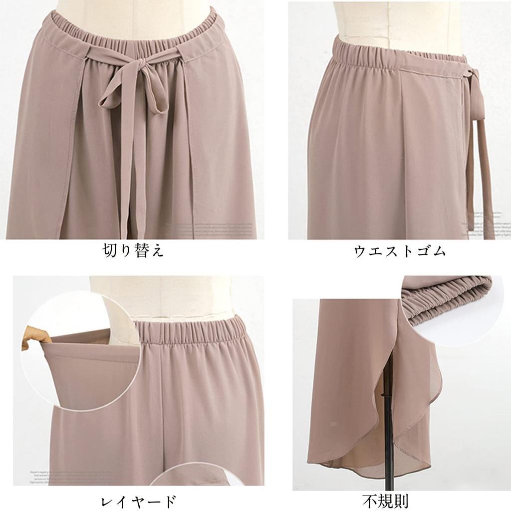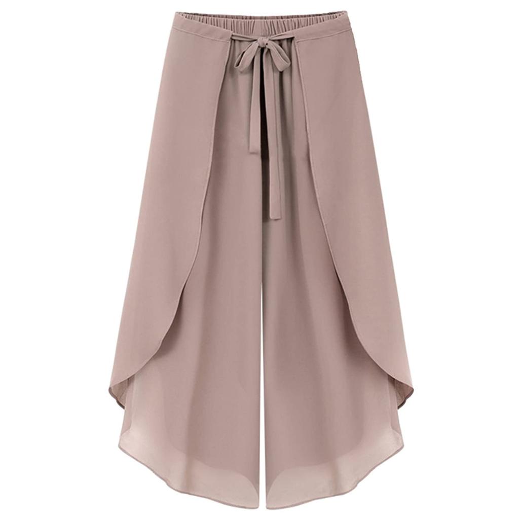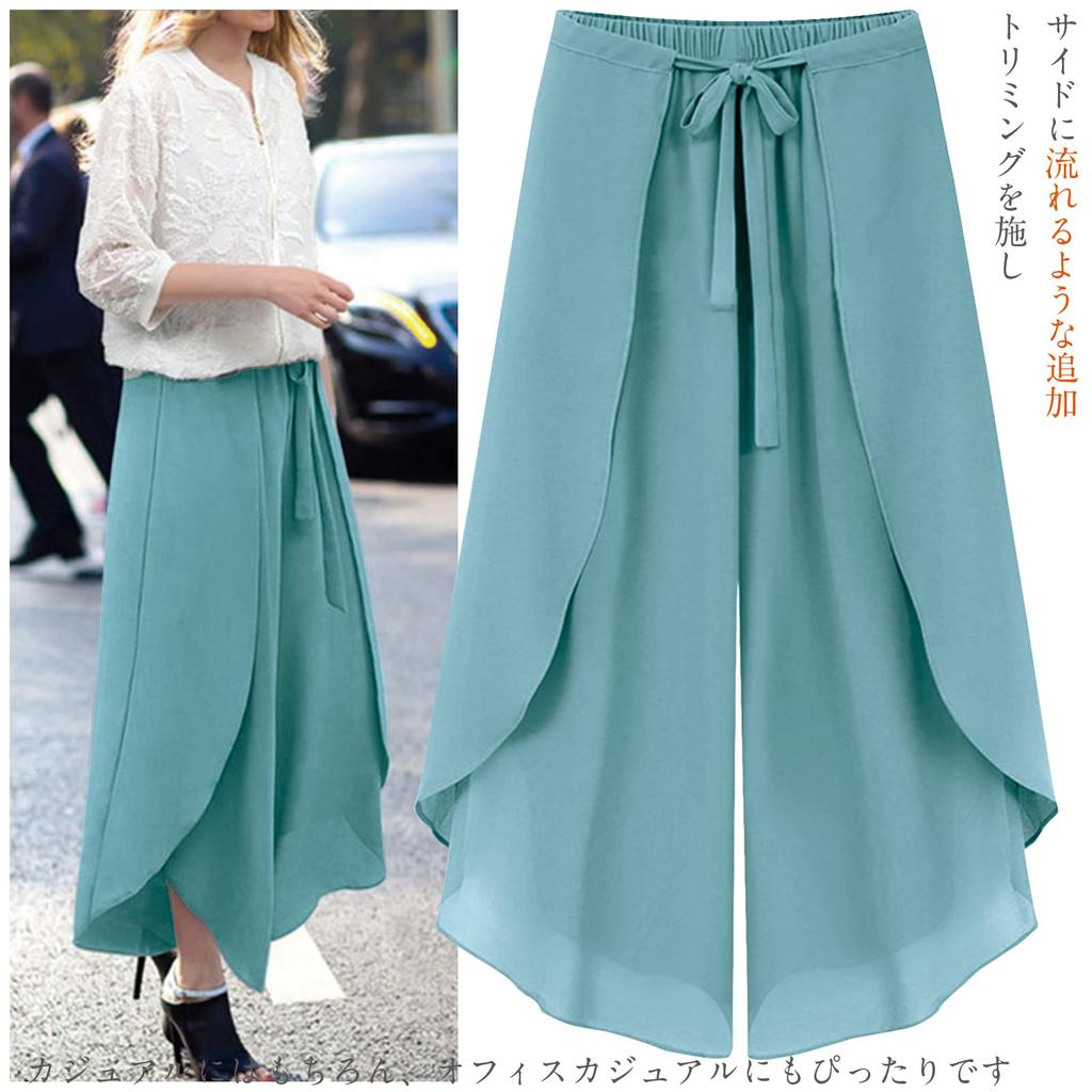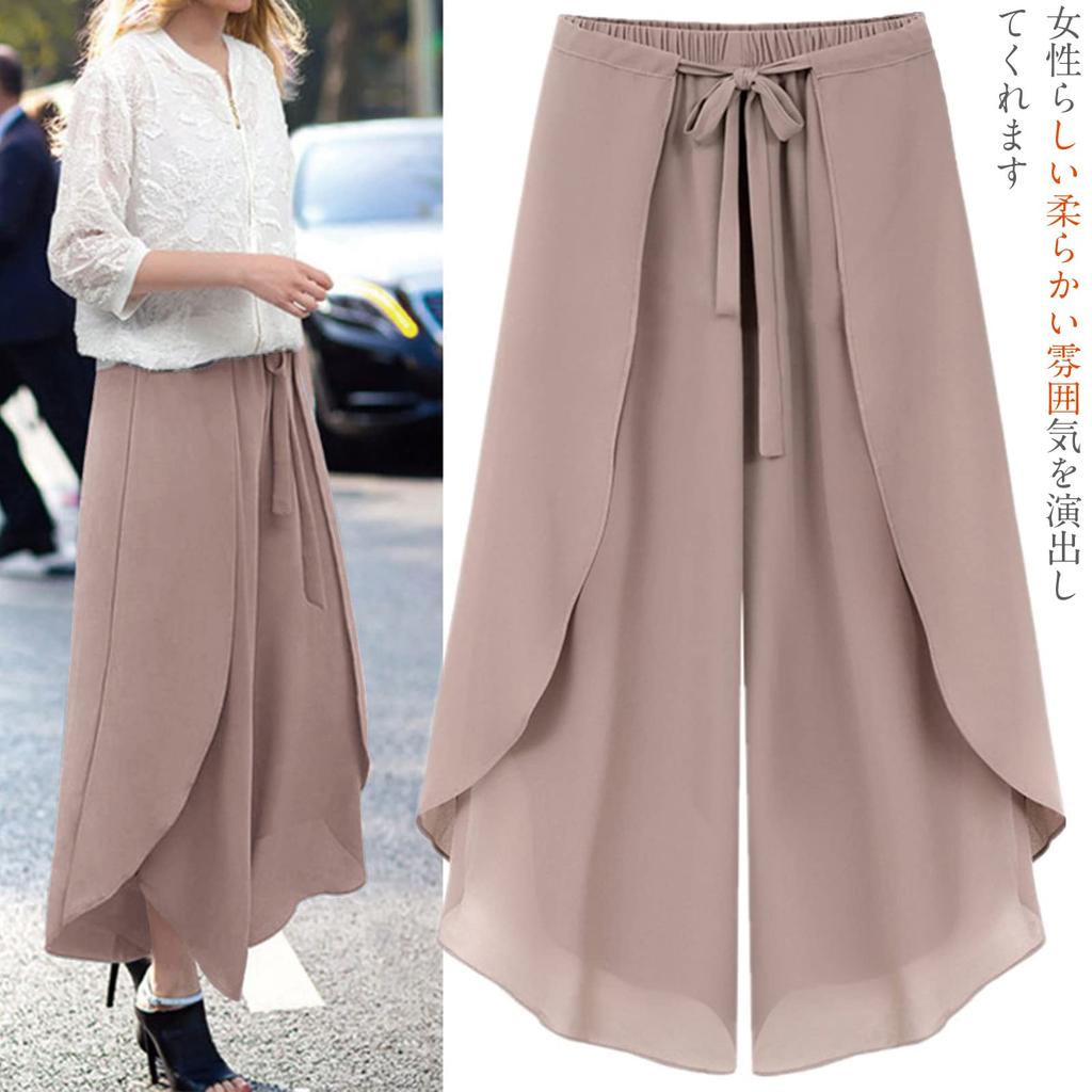 Многослойные гаучо, нерегулярные, эластичные, однотонные, свободные, идеально подходят для лета [7-livehouse] Женские брюки с широкими штанинами, Брюки, Брюки с высокой талией, Шифон, Узор,