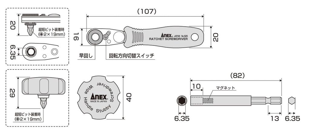 ANEX Компактный трещоточный битодержатель 52 с отверткой, кейс, мульти-набор №. 525-28Б