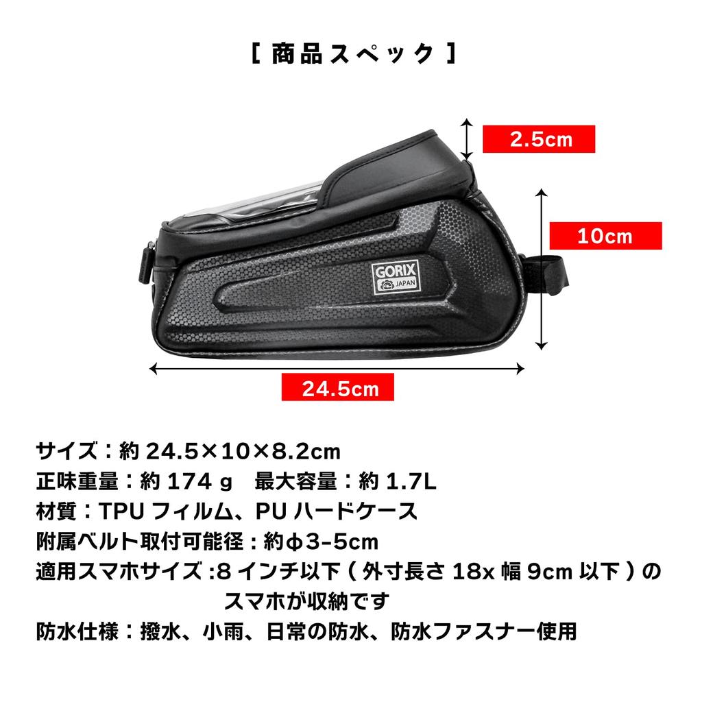 GORIX Сумка на верхнюю трубу с сенсорным экраном и защитой от солнца для шоссейных, кроссовых и других велосипедов (GX-TB68) [Память смартфона, Совместимый, Защита] Велосипеды, Велосипеды,