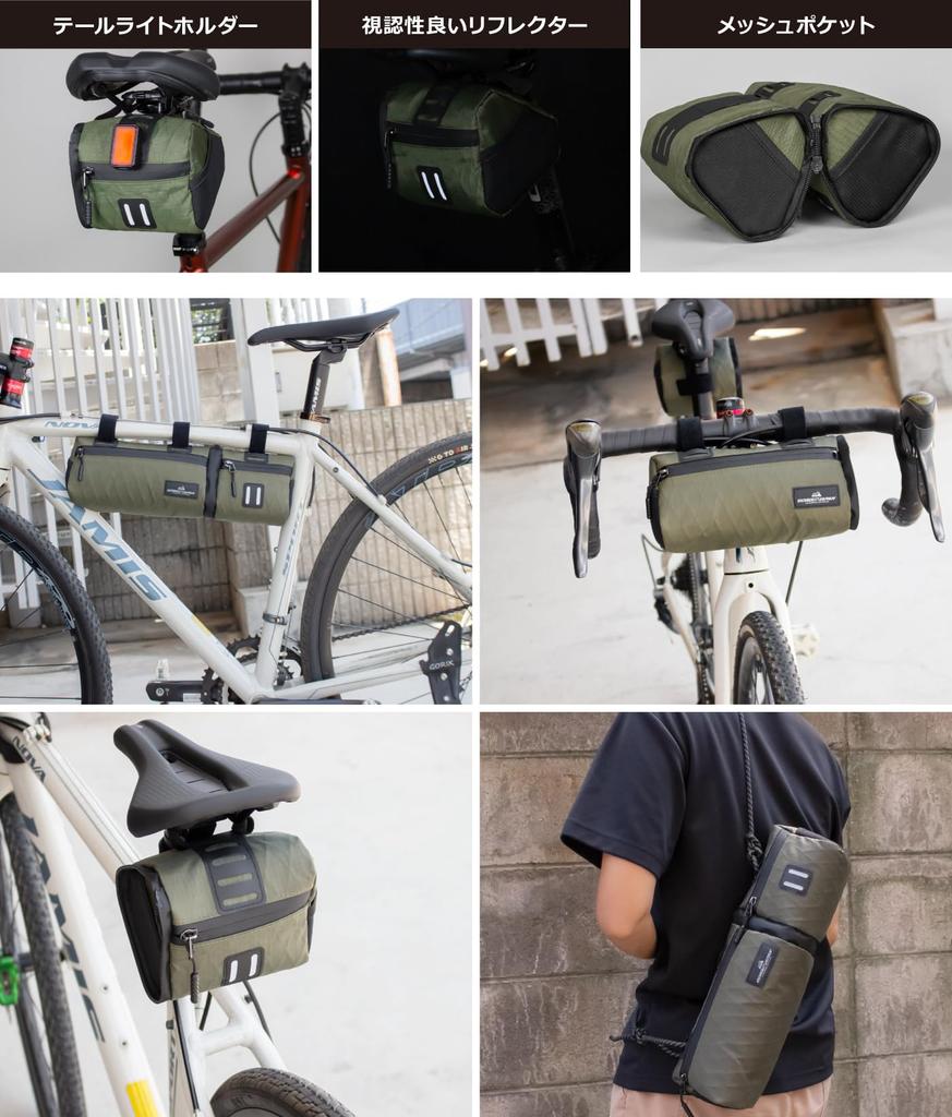 [Detailed design focused on ease of use] Equipped with a smooth zipper, mesh side pockets, and a tail light holder, it offers excellent visibility during nighttime riding and is easily expandable.