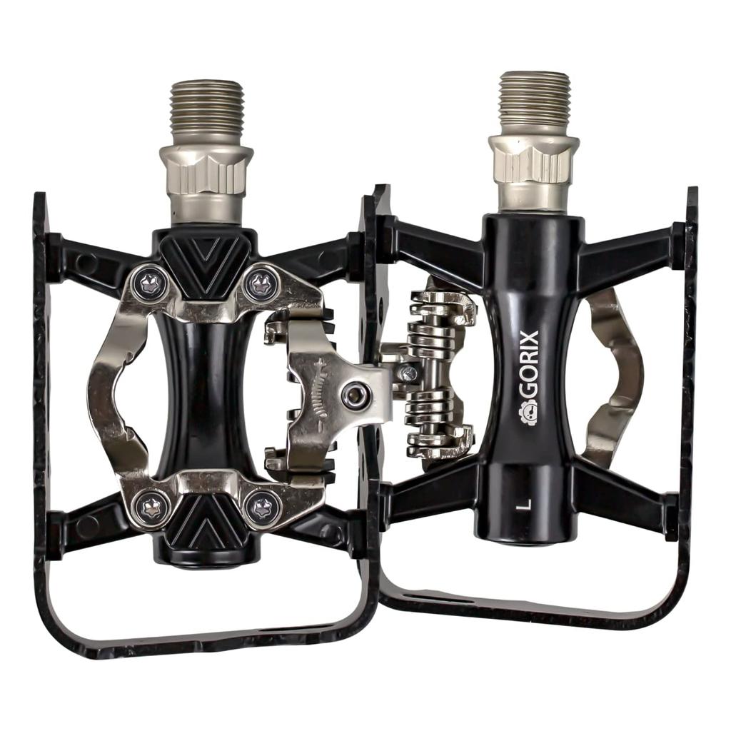 GORIX Плоские велосипедные контактные педали с регулируемыми креплениями и шипами в комплекте для шоссейных и шоссейных фиксированных односторонних креплений, легкие, (GX-PMS106), Черный,