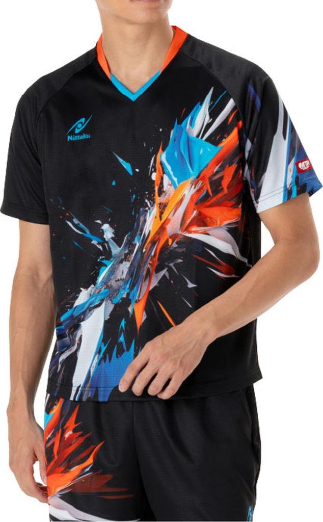 Nittaku Игра в настольный теннис Официально одобрено Японской ассоциацией настольного тенниса Эластичная Яркий Взрыв Размер 2XO Футболка, (JTTA), Унисекс,