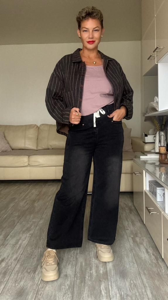 Джинсы- трубы с потертостями 📌Размеры XL-5XL Мои параметры : 167, 98-85-100 На мне размер 3XL Своей любви к джинсам я обязана этому магазину. Я их всегда любила, но на мою нестандартную фигуру найти нужный фасон найти не могла. В этом магазине я заказала очень много штанов, и поняла- это моё). Всегда заказываю на размер больше, чтобы было свободно, люблю укороченные варианты. Именно эти штаны я, с одной стороны, оценила очень хорошо- я в них явно худее, но, бедра, живот и верхняя часть ноги в обтяжку. Мне это непривычно. Хочется размерчик побольше). Длина их меня не смущает- мне нравится, когда косточка на ноге открыта, и брючины не лежат на обуви. Размерная таблица не точна, брюки маломерят . 📌Фасон: Посадка высокая На талии широкая резинка и контрастного цвета шнурок, отверстия для него обработаны ( я бы его вообще убрала, штаны прекрасно держатся и без него) , тем более, есть шлевки для ремня Карманы накладные, горизонтальные, украшены клёпками, вниз идет шов Сзади накладные карманы Силуэт прямой 📌Ткань: Плотная джинса, не тянется Потертости не такие явные, как на фото продавца Пошив фабричный 📐Замеры: ОТ 76-92 ОБ 104 Высота посадки 33 Длина внутреннего шва 66 Длина 97 Ширина брючины внизу 28 Ширина брючины в районе бедра 32