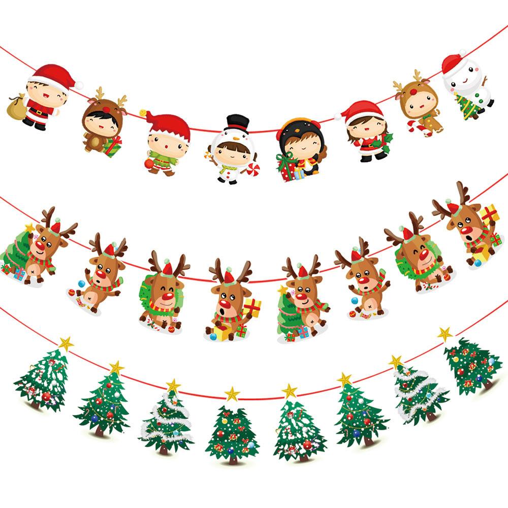 Бумажные декоративные рождественские флажки и стримеры для школьных и магазинных праздников с милым мультяшным рисунком