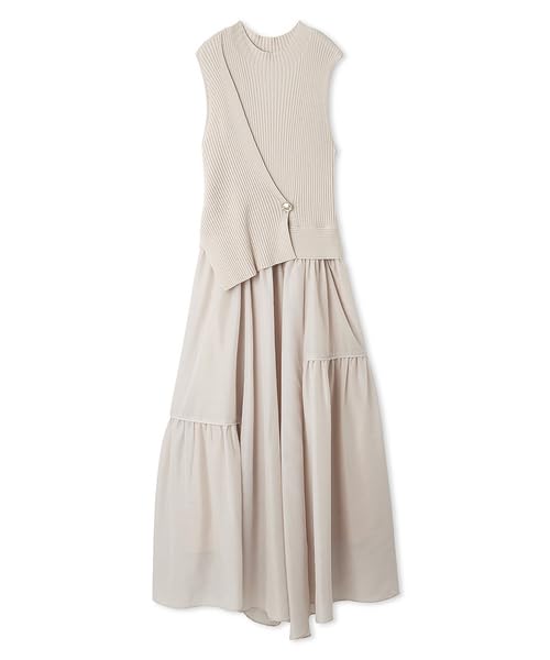 FRAY Metal Brooch Rib Knit Combination Flare Dress I.D. Women's (FWNO251081, Pink) — купить товар онлайн с бесплатной доставкой до всему миру!