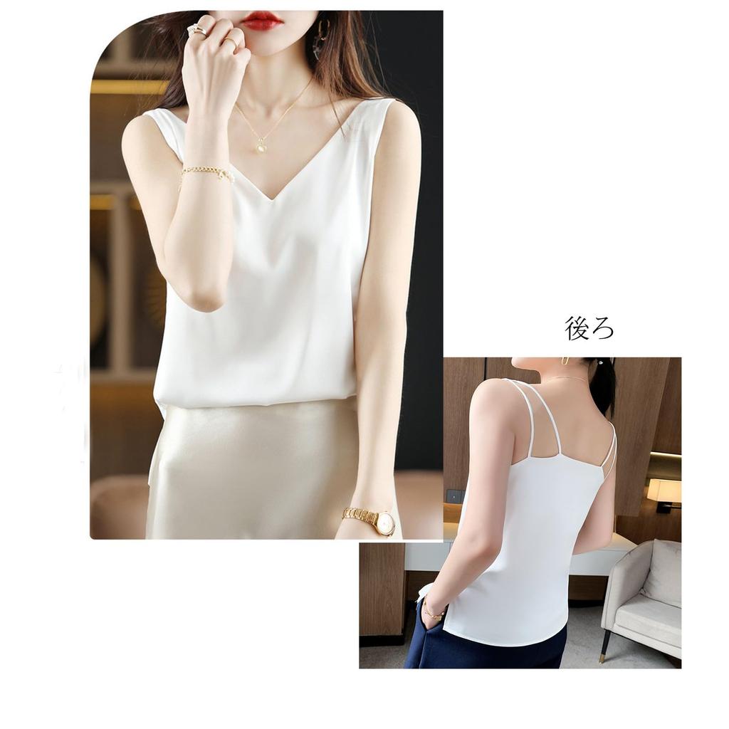 Niliv Simple Silk Tank Silk Solid Stretch Size Women's V-Neck Camisole, Underwear, Top, Pajamas, Sleepwear, Satin, Summer, Breathable, Color,