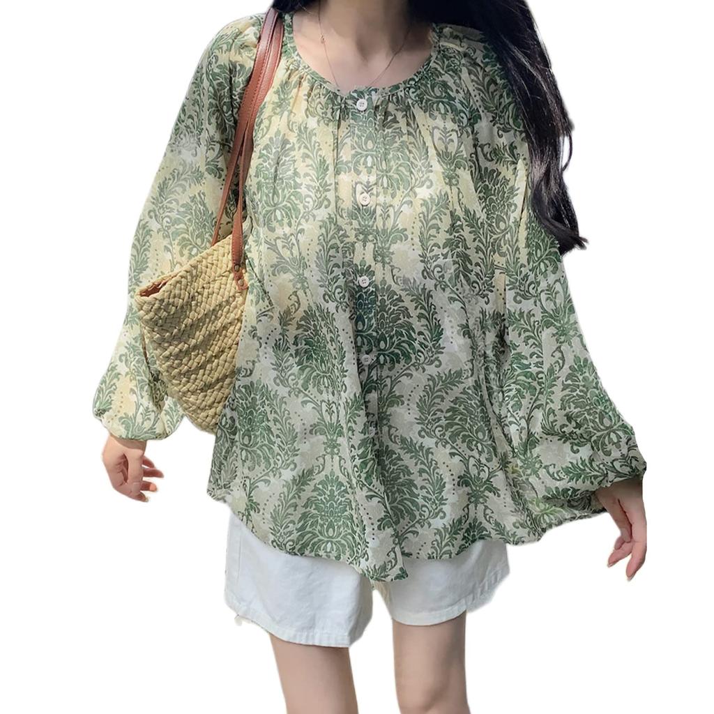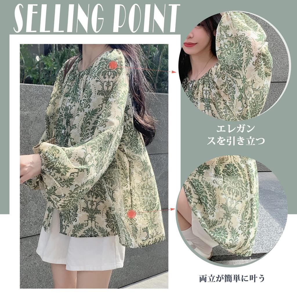Блузка с защитой от УФ-лучей, длинная, цветочная, пышная, большого размера, охлаждающая, для лета, [xppe] Женская рубашка, без воротника, рукав, принт, прозрачная, рукава, шифон,