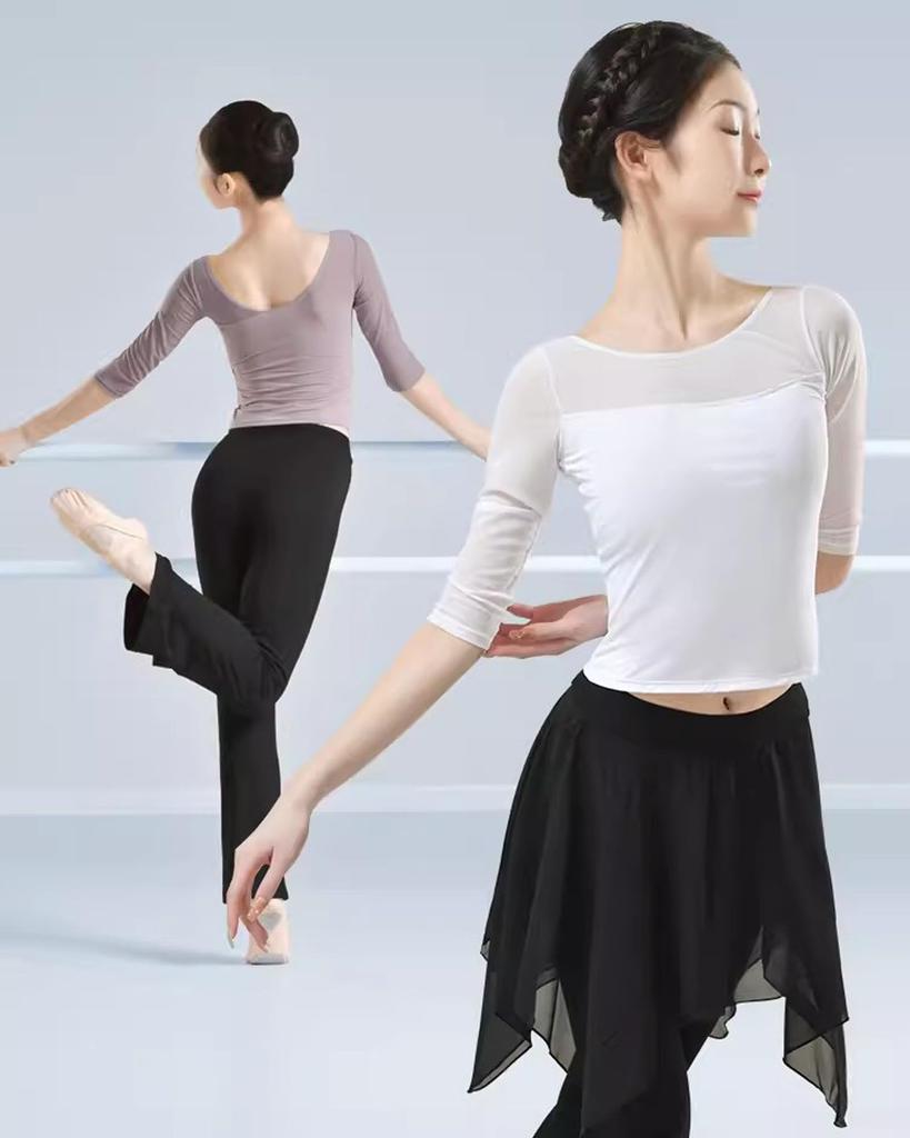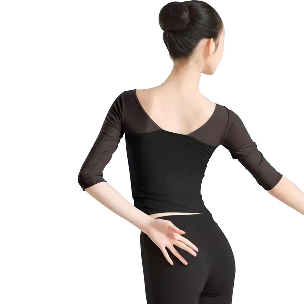 Yuoku Балетный танцевальный рукав для практики, эластичный, открытый, классический, бальный, современный танец, женский костюм, топ 5/8, прозрачная блузка, одежда, без спины, прозрачный,
