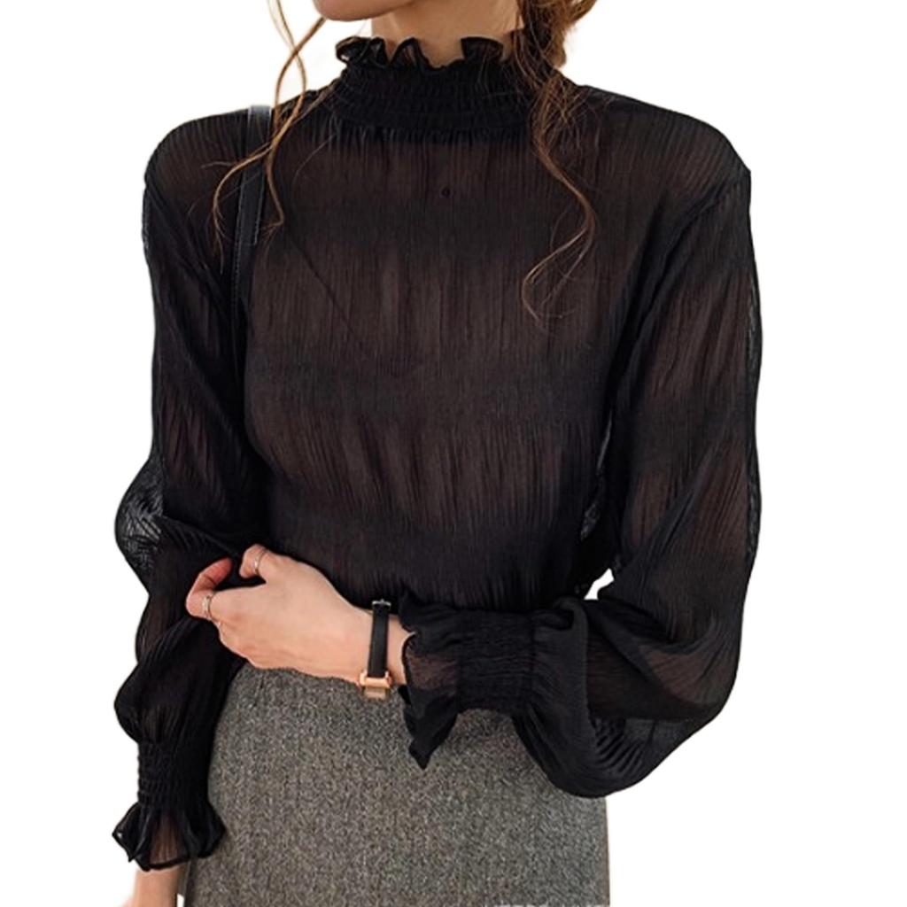 Маленький прозрачный топ с высоким воротом и длинным рукавом, тюлевая сексуальная блузка с кружевом, прозрачный плиссированный зимний свободный [fourfivesix Хару] Внутренний, Прозрачный для многослойности, — купить товар онлайн с бесплатной доставкой по всему миру!