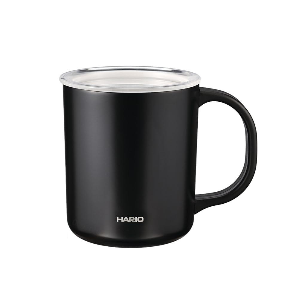HARIO Ceramic Coated Vacuum Insulated with Double-Layer Mug, Black, 350ml, Lid, CMG-350-B