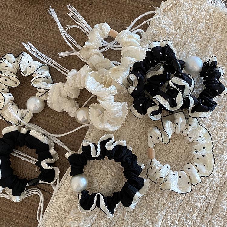 Корейская черно-белая резинка-скранчи в горошек с жемчугом - Универсальная, высокоэластичная резинка для волос — купить товар онлайн с бесплатной доставкой по всему миру!