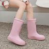 Женские высокие резиновые сапоги в японском стиле с флисовой подкладкой, водонепроницаемые - Нескользящие, легкие и износостойкие.