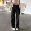 Женские джинсы прямого кроя с высокой посадкой, 2022 - Европейский и американский стиль, Слим-фит, Однотонные, Повседневные длинные брюки