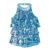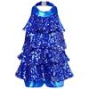 Детское платье с блестками и блестками на шее для джазовых латинских танцев, короткое платье с рюшами, танцевальная одежда для выступлений на сцене