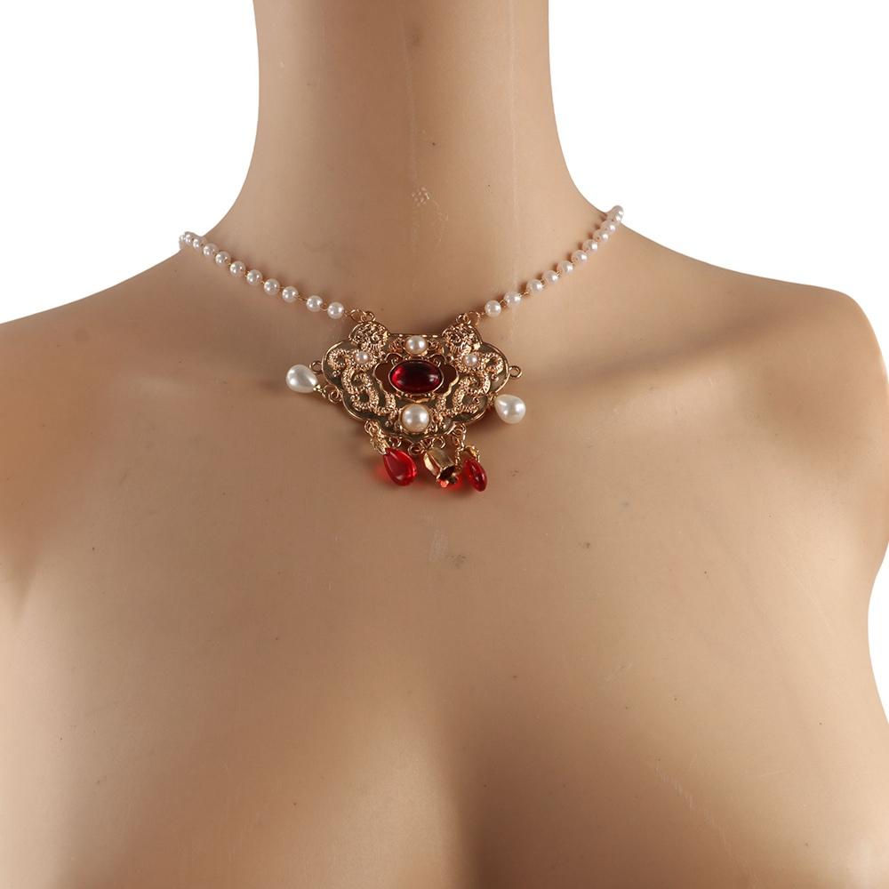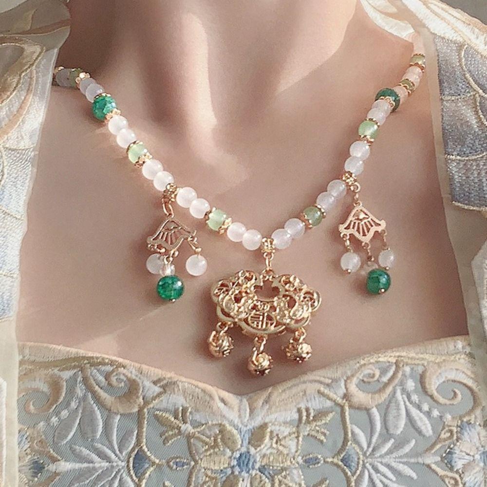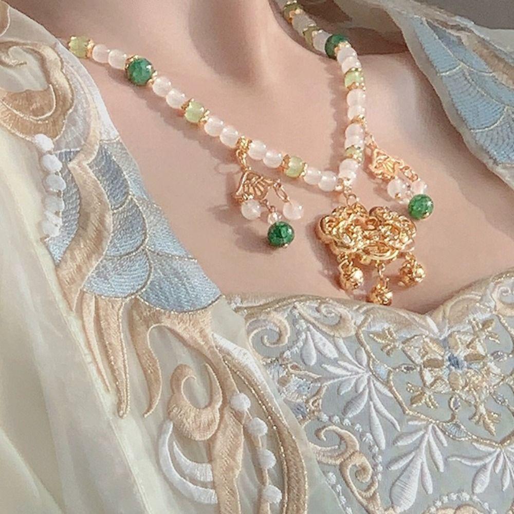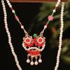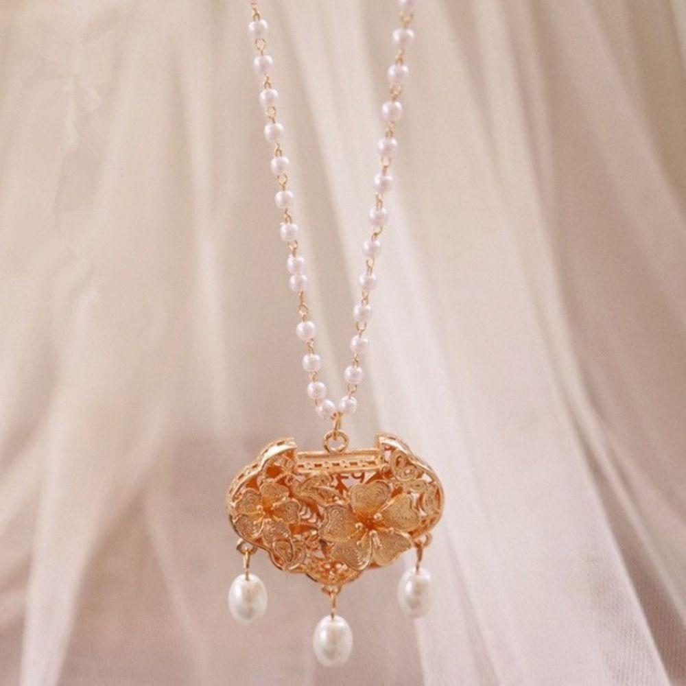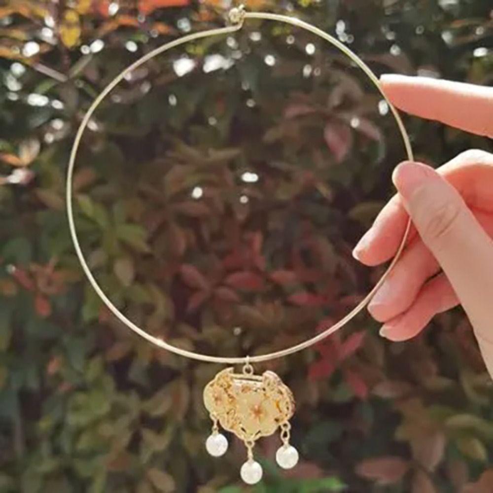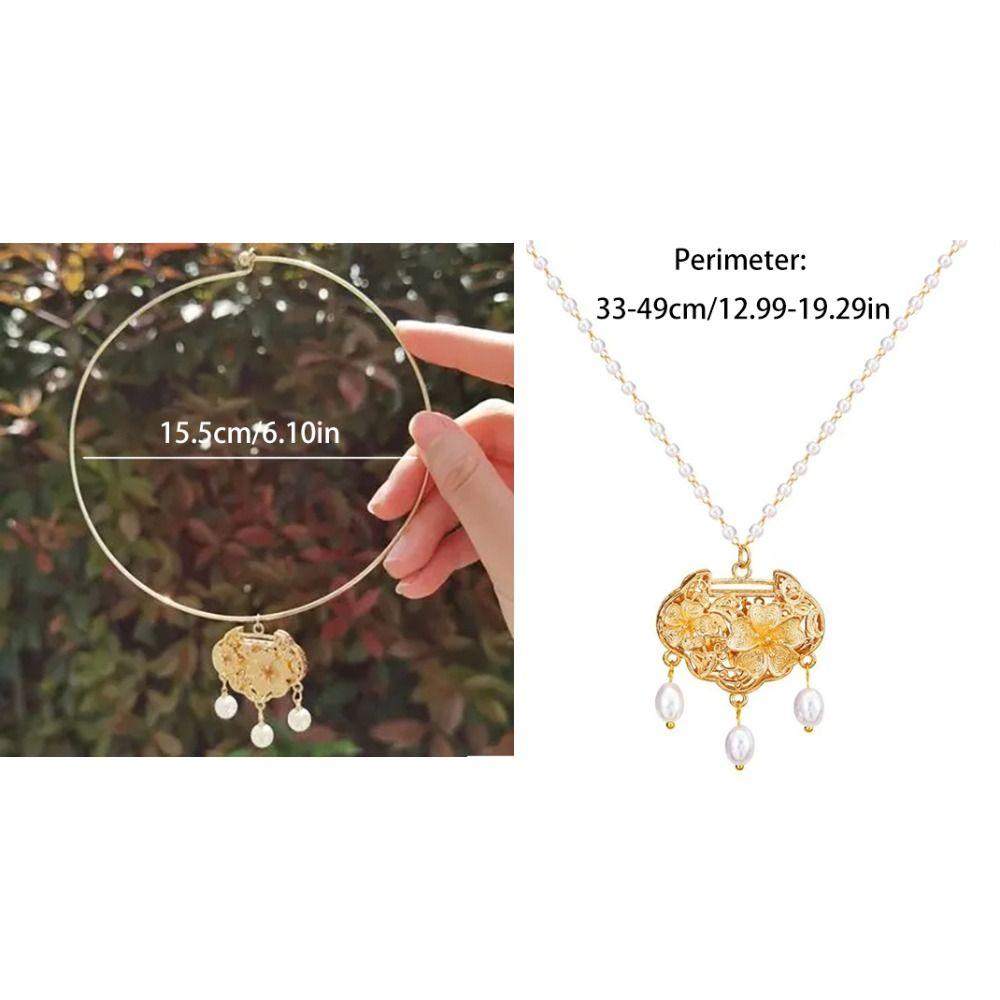 Flower Longevity Lock Pendant Chain Choker Ruyi Pearl Choker Luxury Vintage Hanfu Necklace Party