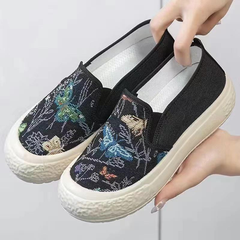 Старые пекинские тканевые туфли летние новые женские на плоской подошве парусиновые повседневные модные студенческие на высоком каблуке с мягкой подошвой