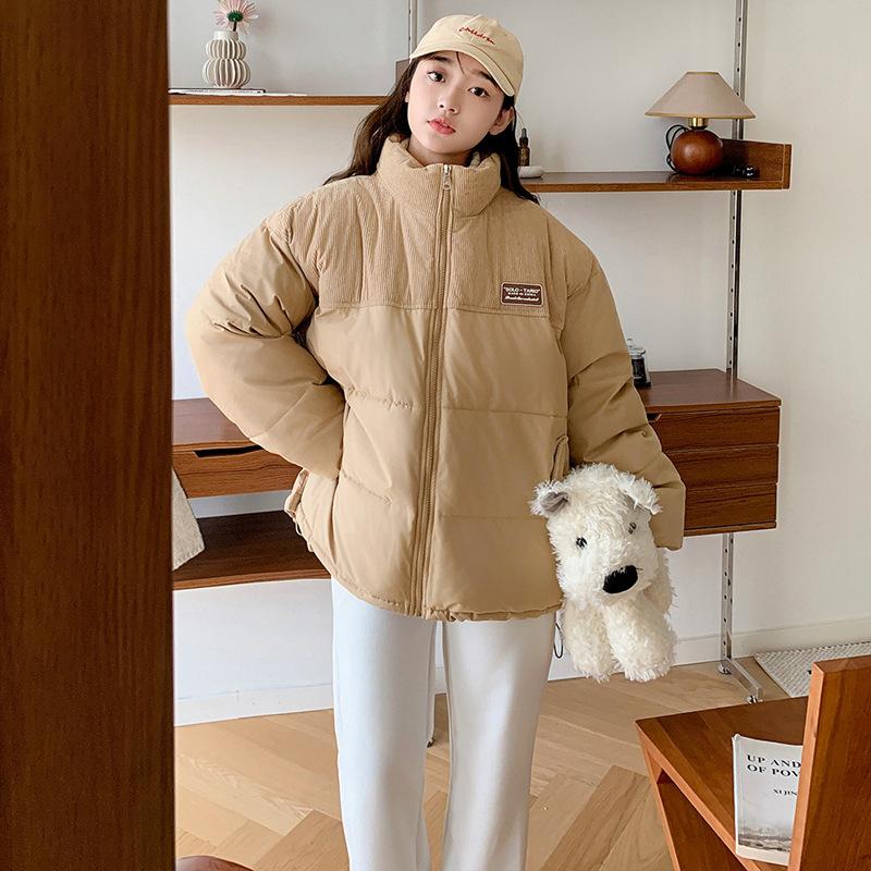 2025 Новая короткая пуховая хлопковая куртка женская вельветовая комбинированная хлопковая куртка свободная утолщенная стеганая куртка зимняя куртка